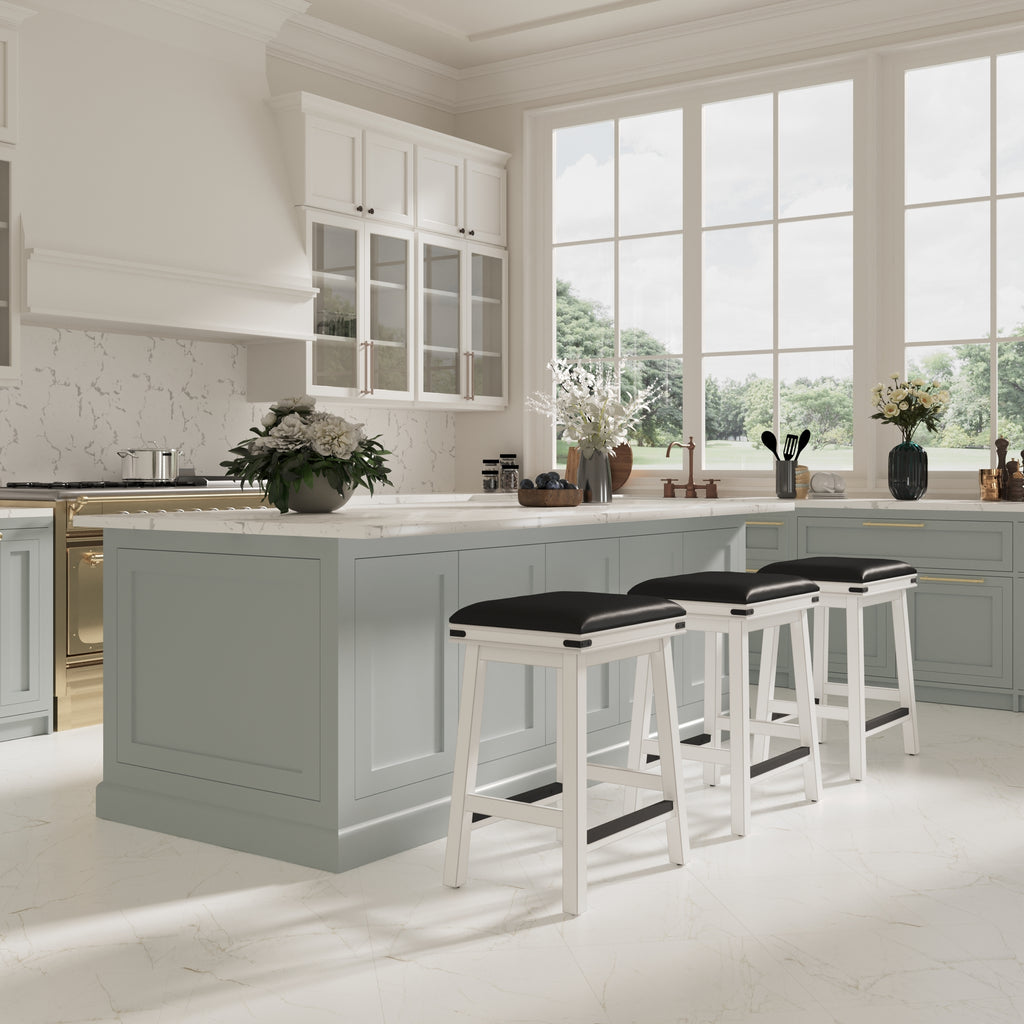 - TWO SIZES: The simple yet elegant design and color palette complement any kitchen or bar decor, available in 24 in counter stool or 30 in bar stool heights. Seat dimensions: 17.5 in W x 14 in D, Footrest height: 24 in stool 8.5 in, 30 in stool 14 in.