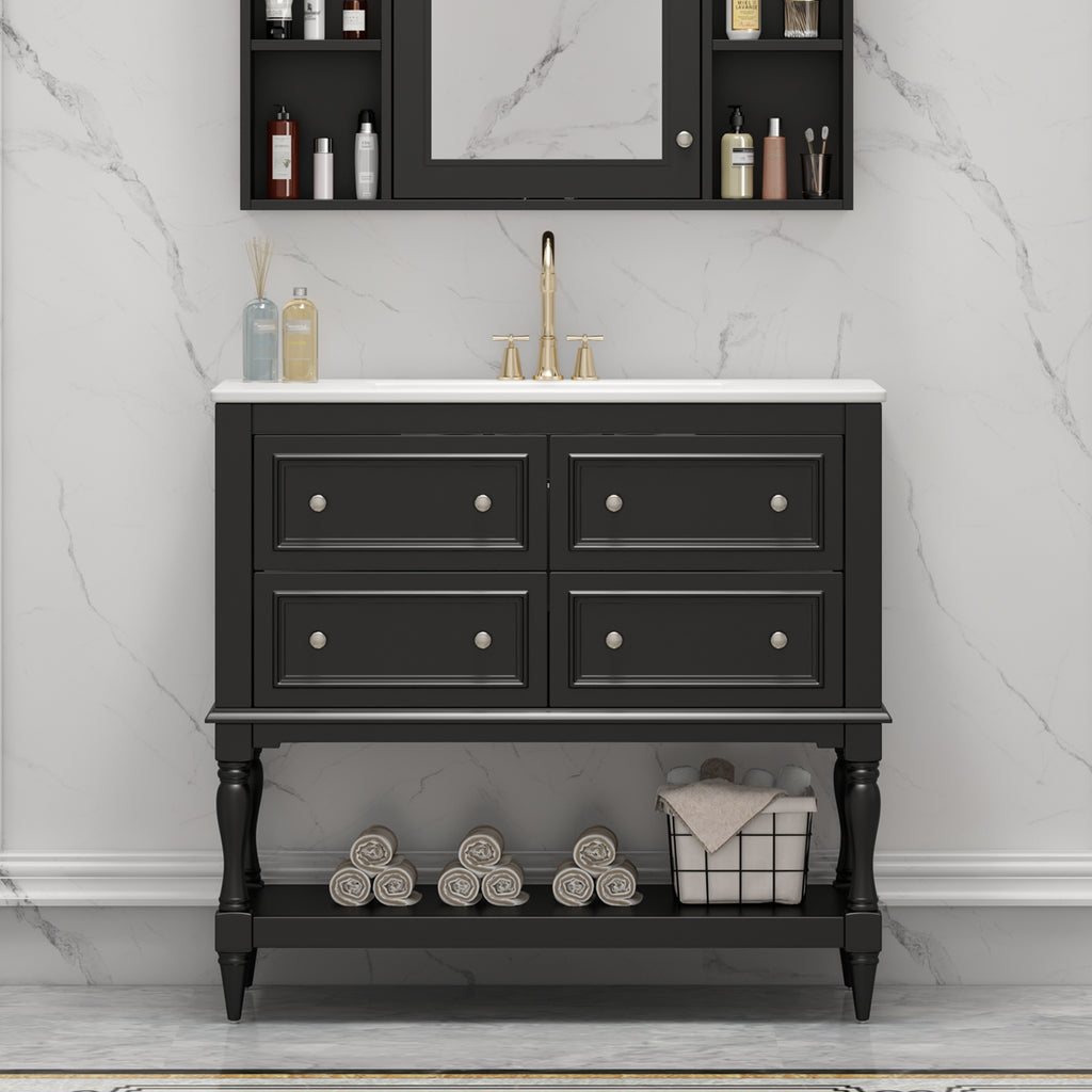 36' Bathroom Vanity Cabinet with Sink Combo Set, Undermount Ceramic Sink, Free Standing Vanity Set with 4 Drawers, Solid Wood Frame Bathroom Cabinet, Black