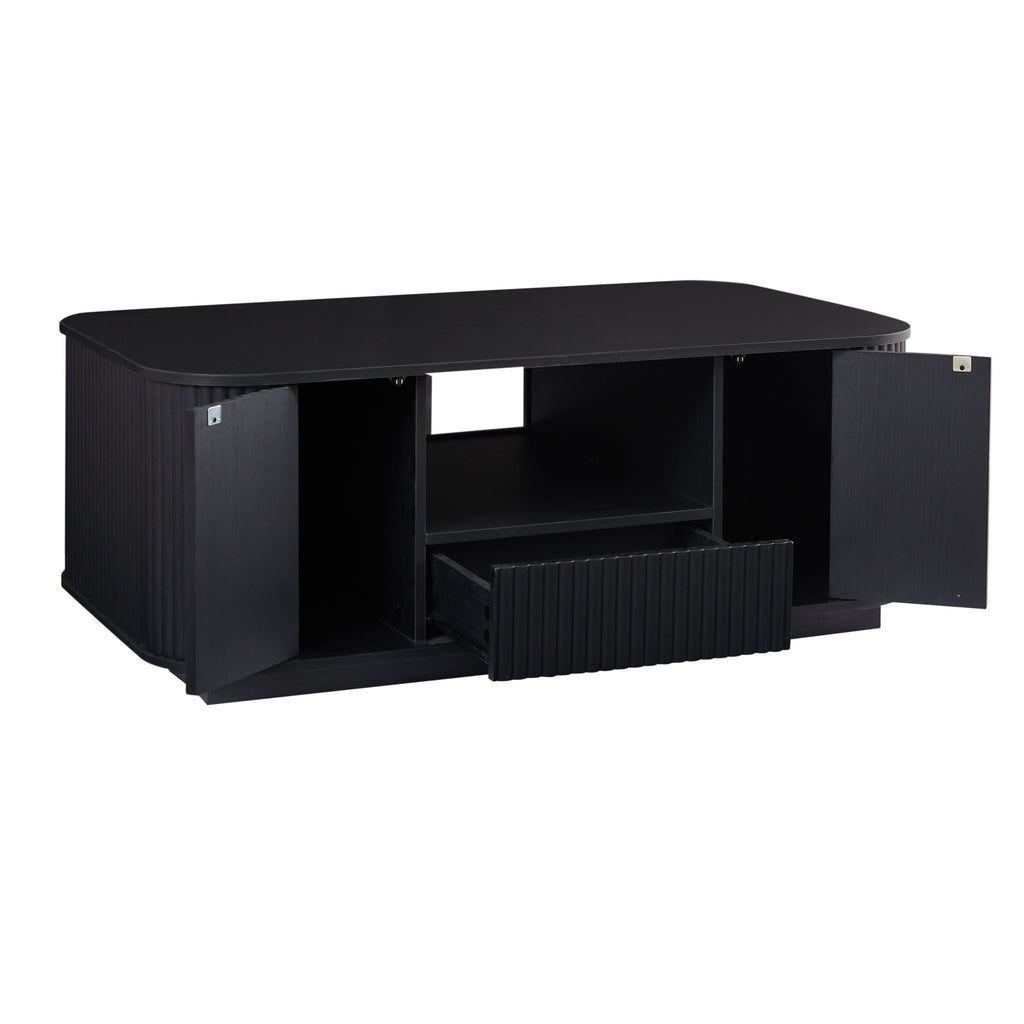 - Ample storage space: Our coffee table features two storage drawers, an open storage shelf, and four doors that open to reveal two spacious hidden storage compartments. These compartments are ideal for storing frequently used items such as books, cups, games, and controllers, keeping them dust-free while providing additional storage space. With our coffee table, you can fully maximize your storage potential.