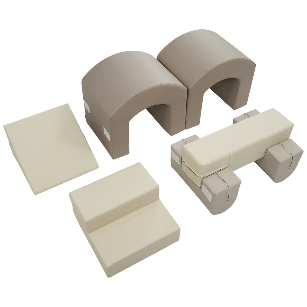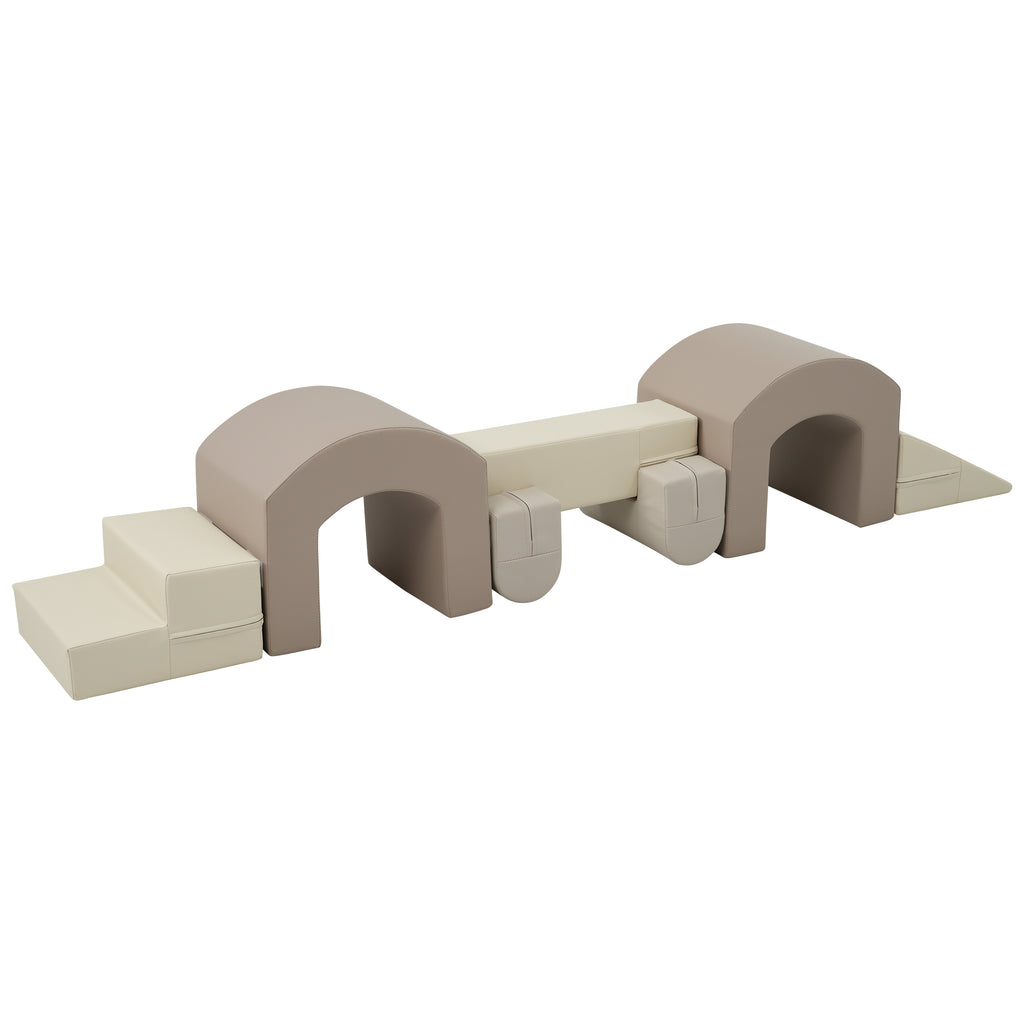 Indoor Soft Foam Climber Play Sets 7 in 1 for Toddlers, Kids Play Structure in Coffee Foam