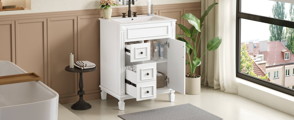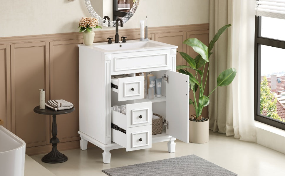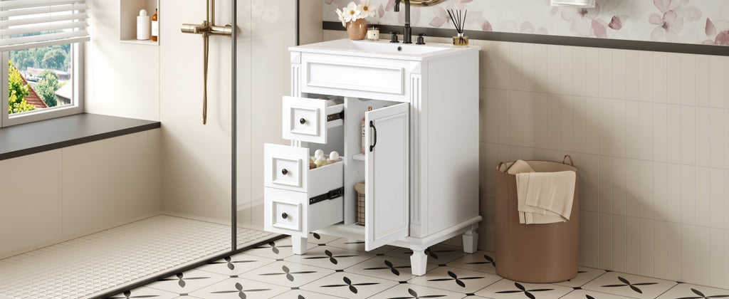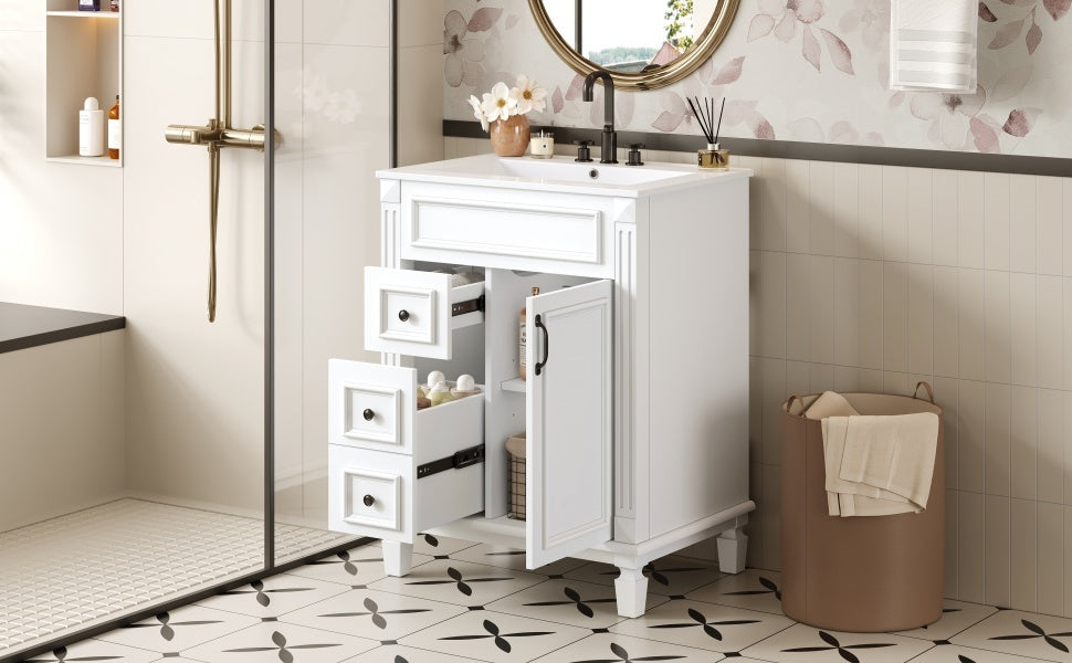 24' Bathroom Vanity with Ceramic Sink with 2 Drawers and Adjustable Shelf