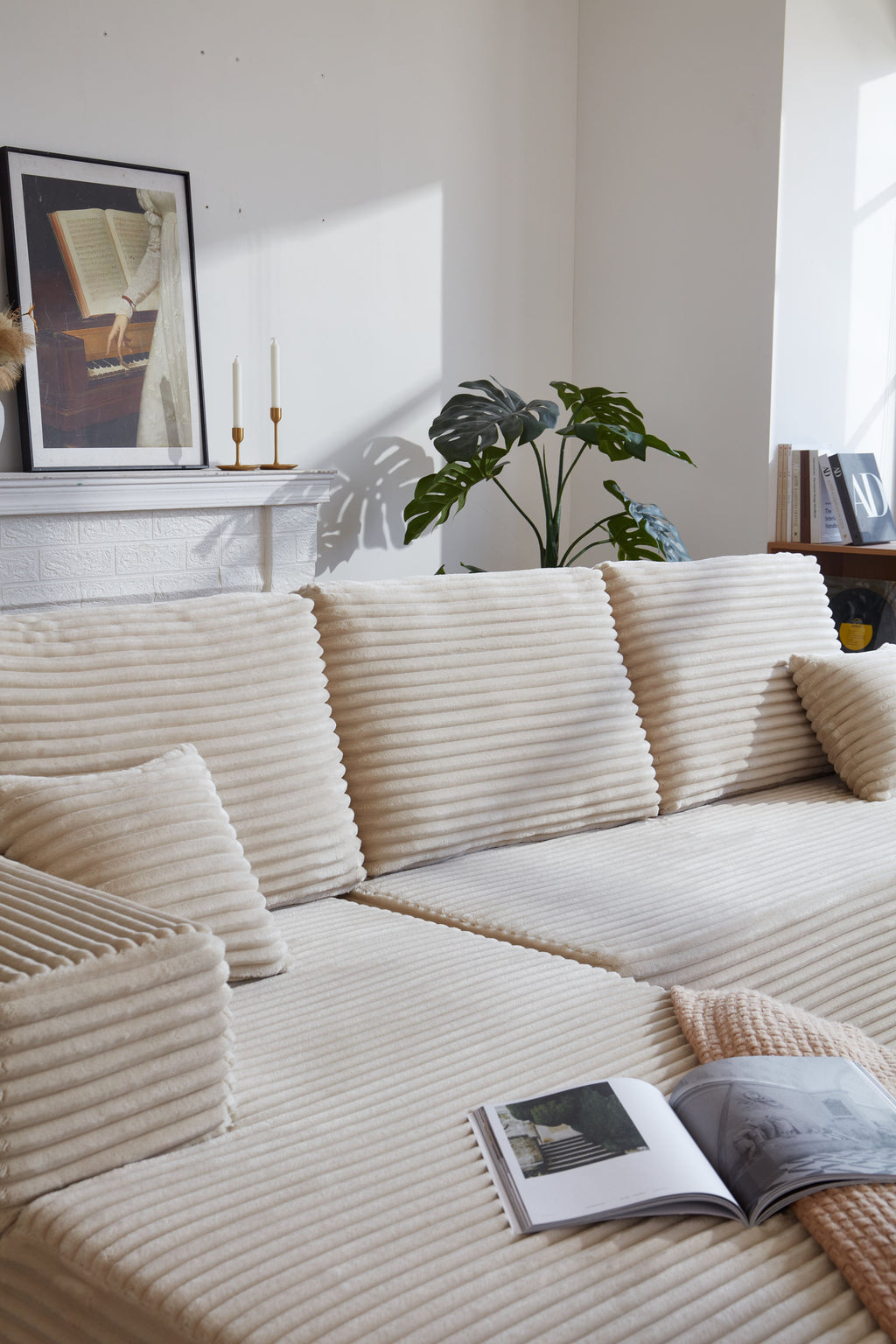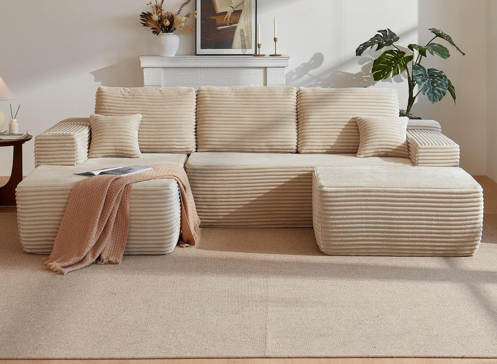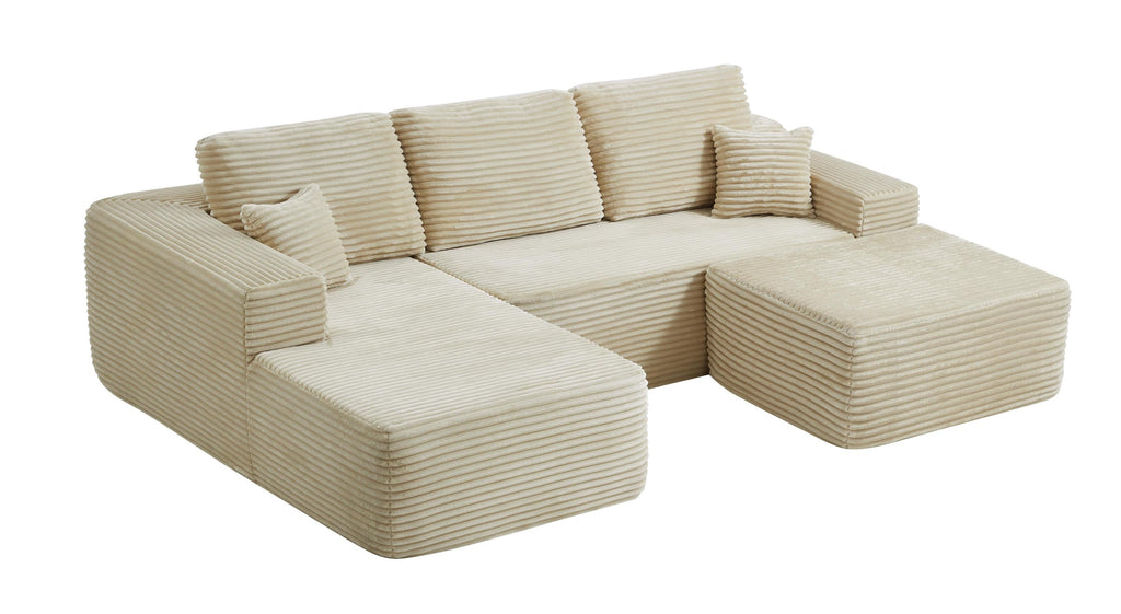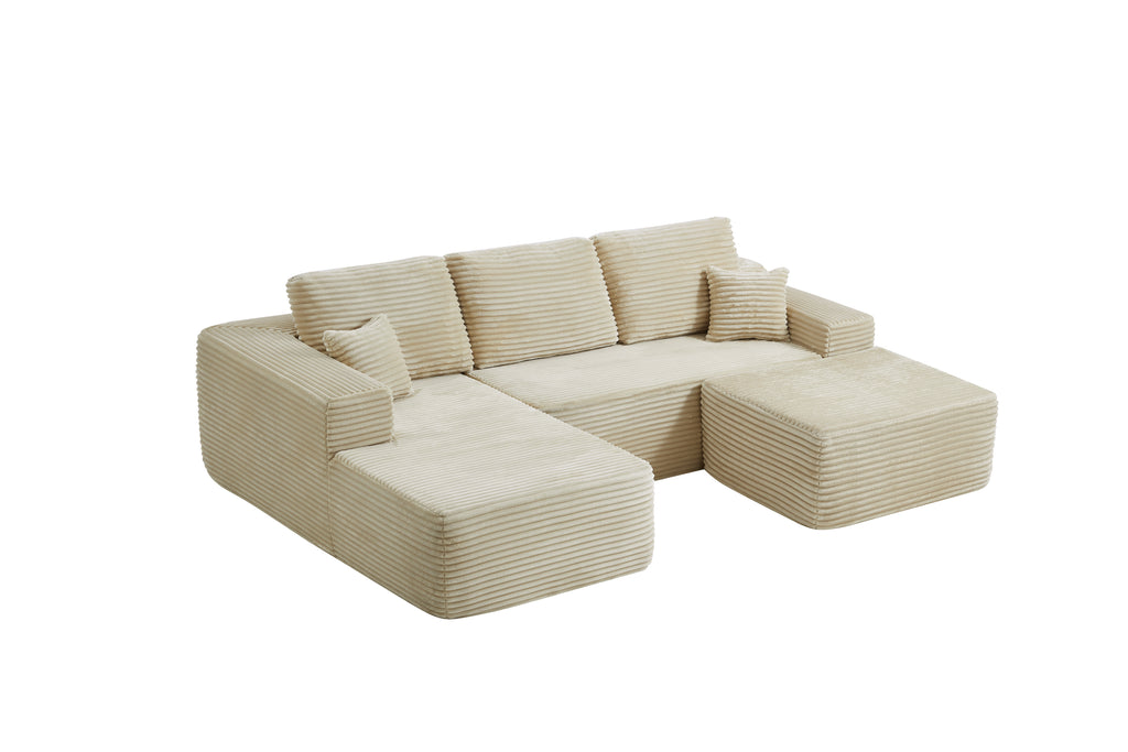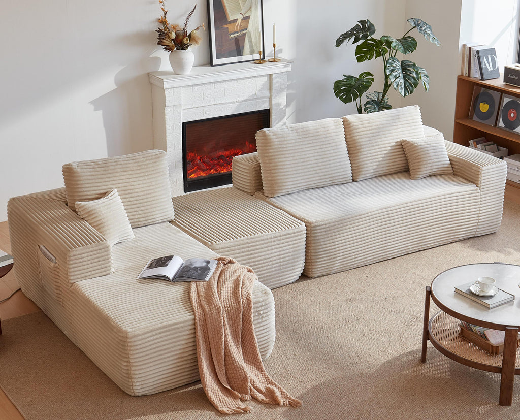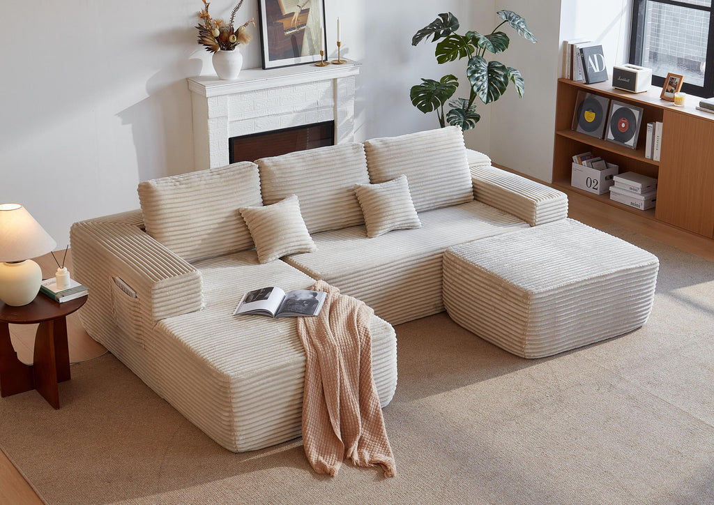 • Modular Sectional Sofa:This sectional sofa featuring a sleek design, clean lines, and high-quality plush corduroy Fabric,This sectional set maximizes space when placed against a wall,this corner sofa effortlessly adds a timeless and sophisticated touch to your home. Designed to be the focal point of attention, it's an ideal choice for elevating the ambiance of living rooms, apartments, and bedrooms.