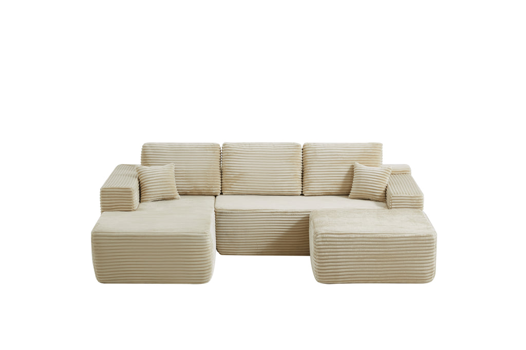 105.7'Cloud Sectional Couch with U-Shaped Chaise,Modern Modular Sofa with Deep Seat, Upholstered Couches for Living Room Bedroom,No Assembly Required,(Plush Fabric),Beige