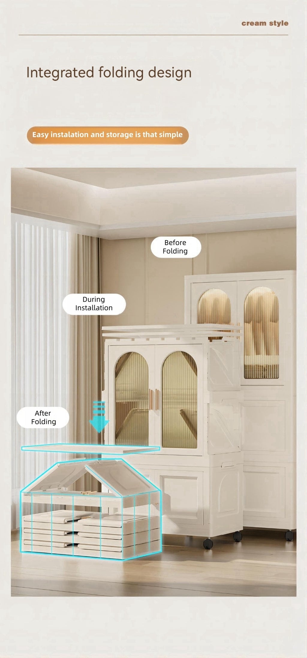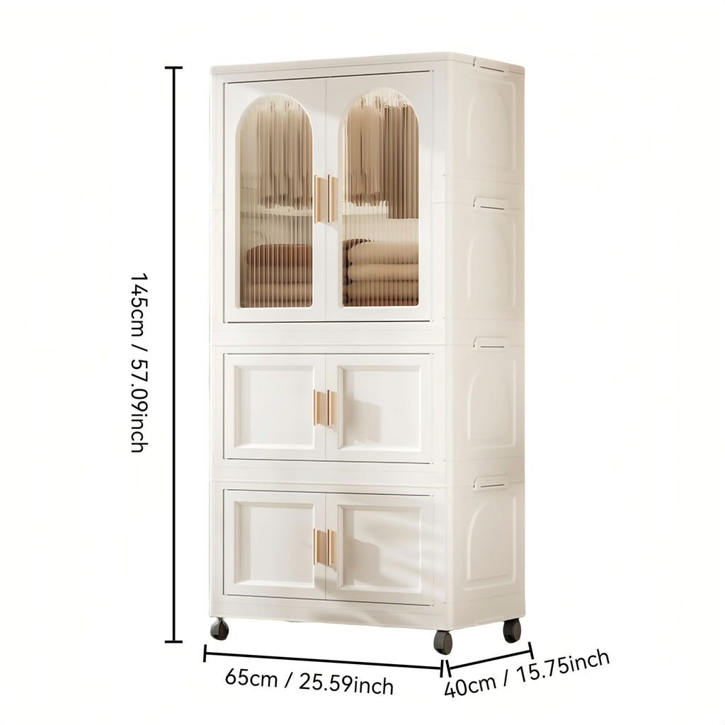 25.59' Side Wide Folding Wardrobe , 25.59'×15.75'×57.09', with Magnetic Door, Plastic Storage Cabinet with Wheels( one layer of wardrobe + two layers of folding boxes+10 hangers )
