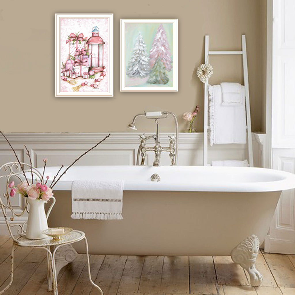 Trendy Decor 4U 2- Piece Vignette Pink Candy Land Christmas Trees White Framed Wall Art for Living Room, Bedroom Wall Art Print for Home Decor by Mary June