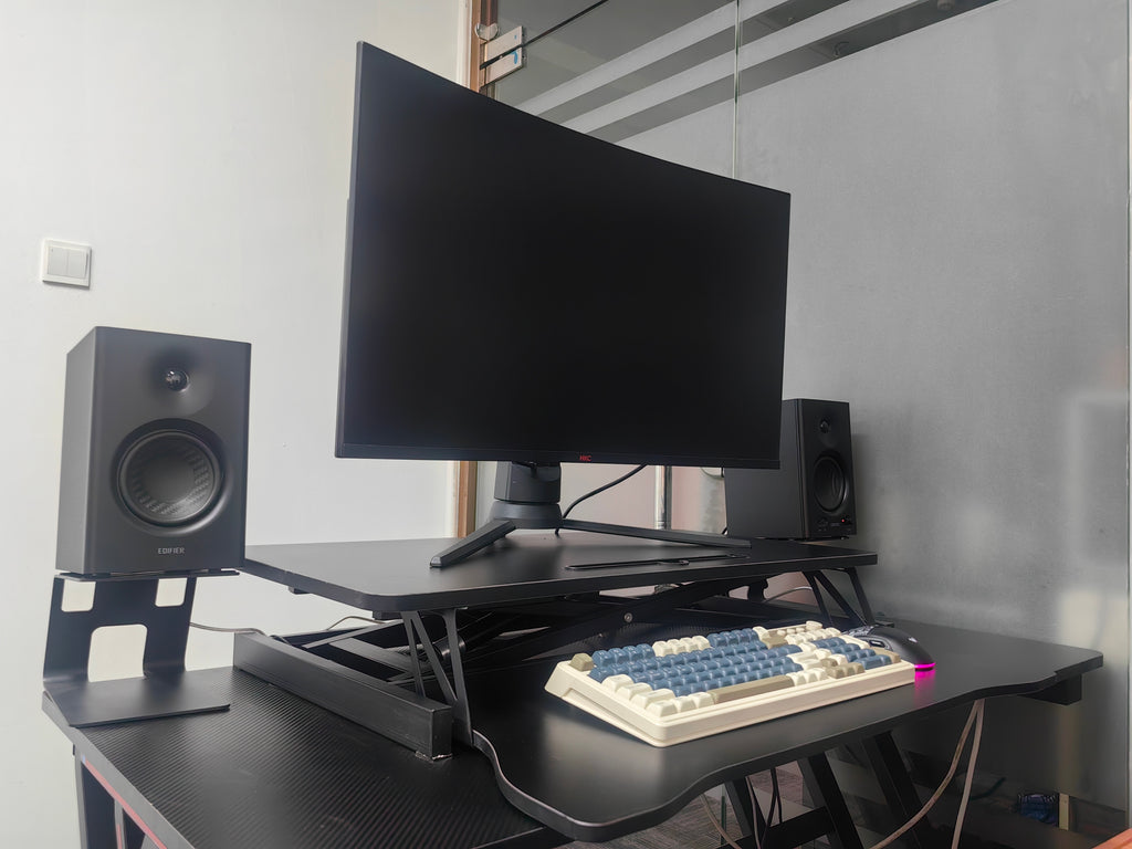 • 【Spacious Work Area】The top surface measures 31.5” x 15.7” providing plenty of space for single monitor, dual monitor, and laptop + computer monitor setups. Raises up to 19.8 inches and lowers down to 4.3 inches making this ideal for you no matter your height.