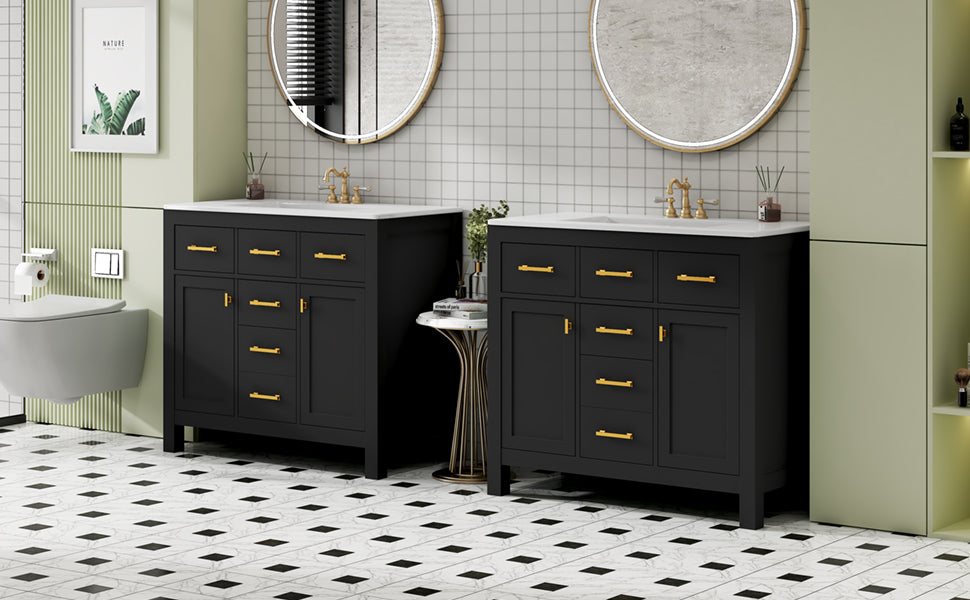 - [Modern Minimalist Style] This bathroom vanity has a simple and clean design. The sink is made of creamic and is easy to clean. The cabinet features a traditional shaker style design with a painted finish to bring a modern and luxurious look to your bathroom. Complements a variety of bathroom styles!