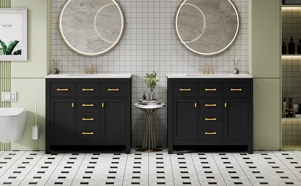- [ Easy to assemble ] The bathroom cabinet parts and hardware are shipped together. Each part has marks and reserved holes, which is more convenient for you to complete the assembly step by step according to the instructions. And to reduce the possibility of product damage during long-distance shipping, we have divided this set into two packages. One package is the basin and the other package is the cabinet.