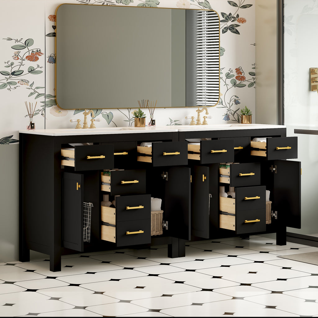 - [Perfect Storage Solution for Bathroom] Considering the humid environment of the bathroom, this bathroom cabinet comes with 4 large cabinets with soft closing doors. You can store your bathroom favorites inside, protecting them from water damage and dust. In addition, we have also designed 4 drawers of different sizes so that you can store different items in an orderly manner according to their size.