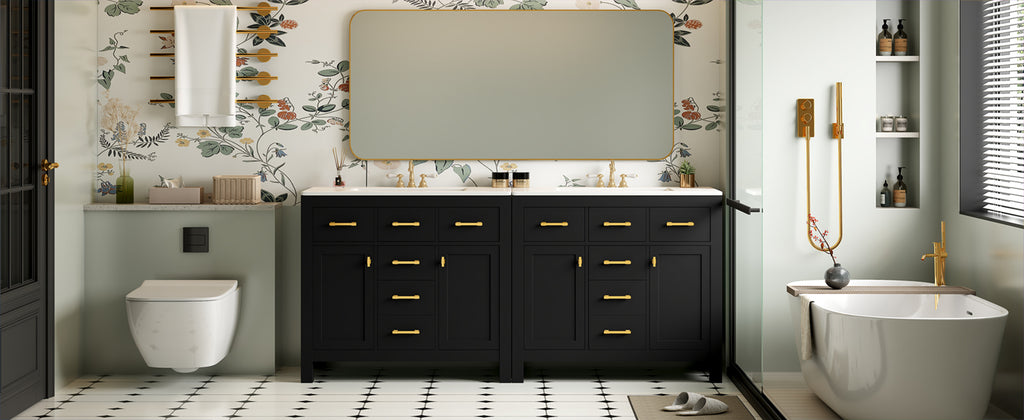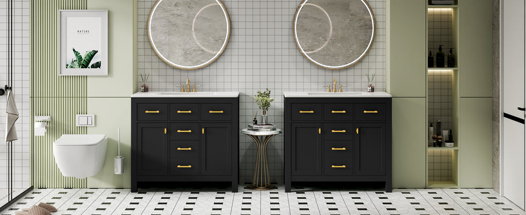 - [High Quality Hardware]The doors are equipped with high quality adjustable hinges that can prevent the doors from slamming shut and allows them to close with gentle automatin ease. The exquisite handle not only has good quality but also makes your bathroom look very elegant.
