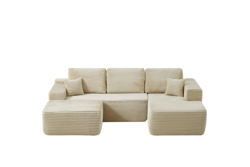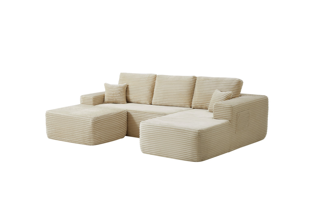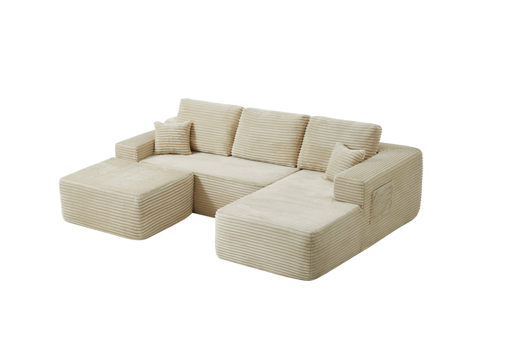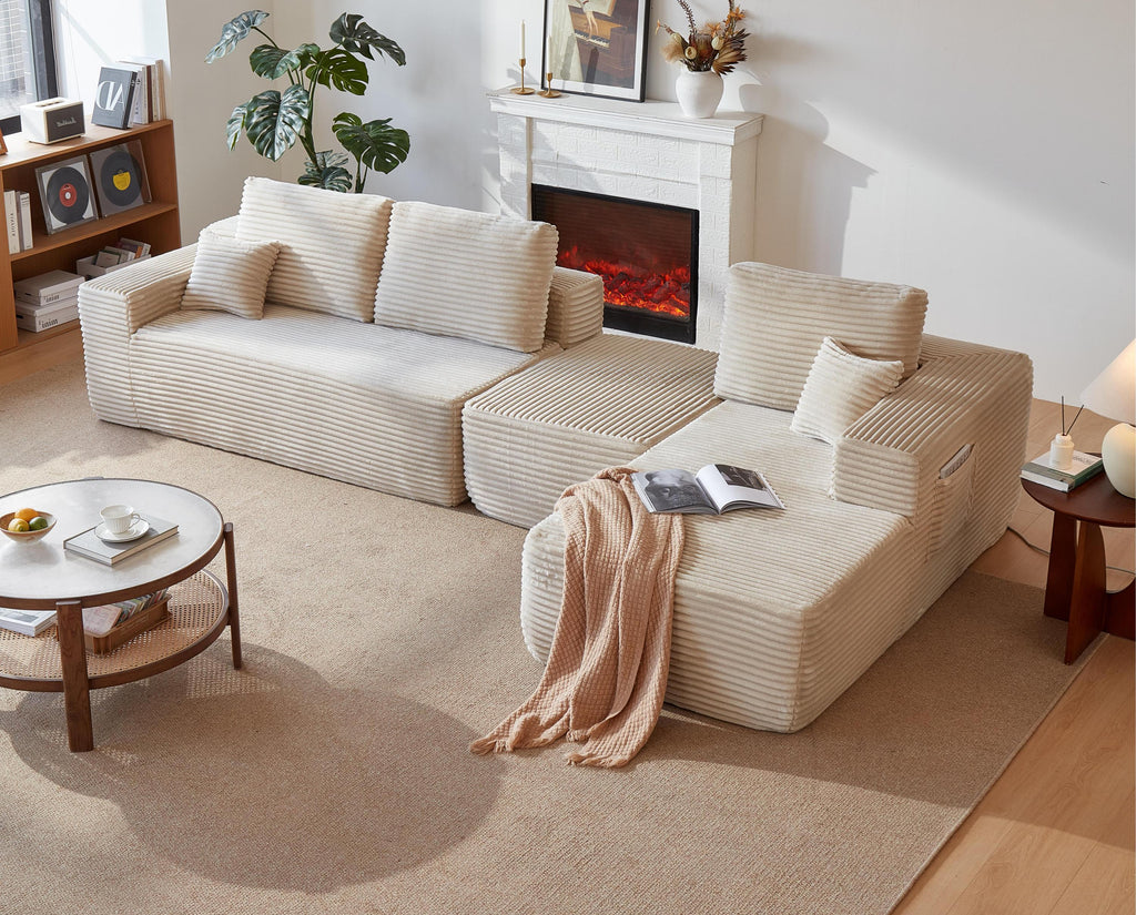 • Modular Sectional Sofa:This sectional sofa featuring a sleek design, clean lines, and high-quality plush corduroy Fabric,This sectional set maximizes space when placed against a wall,this corner sofa effortlessly adds a timeless and sophisticated touch to your home. Designed to be the focal point of attention, it's an ideal choice for elevating the ambiance of living rooms, apartments, and bedrooms.