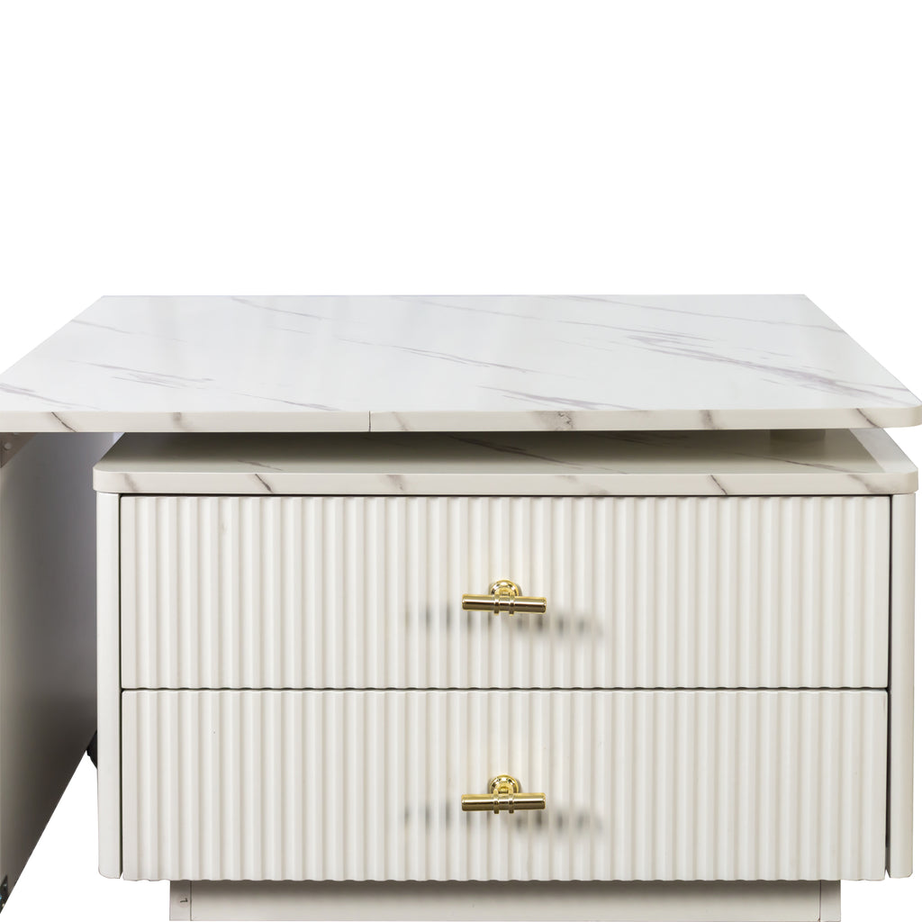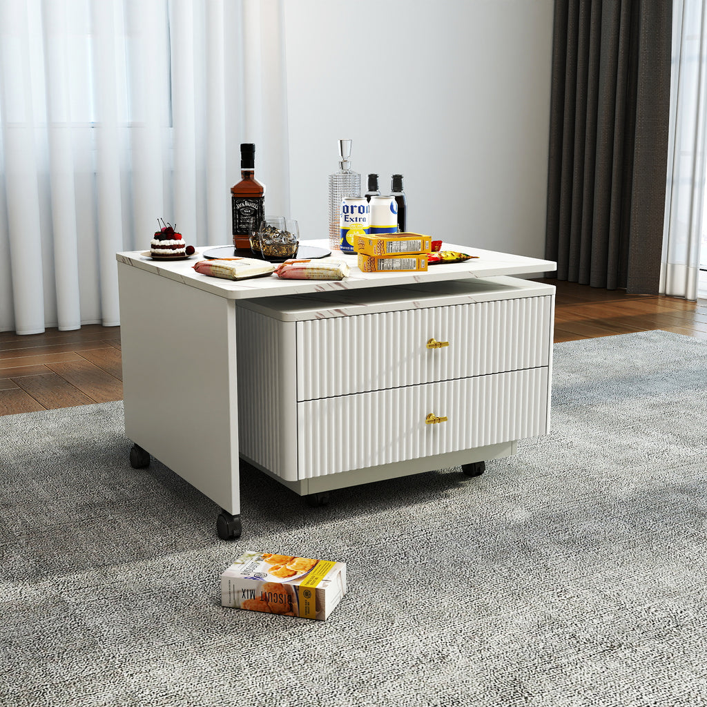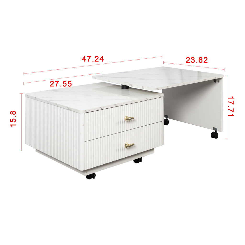Extendable Coffee Table with Storage, Reversible Living Room Table with 2 Drawers and with 6 Wheels, White