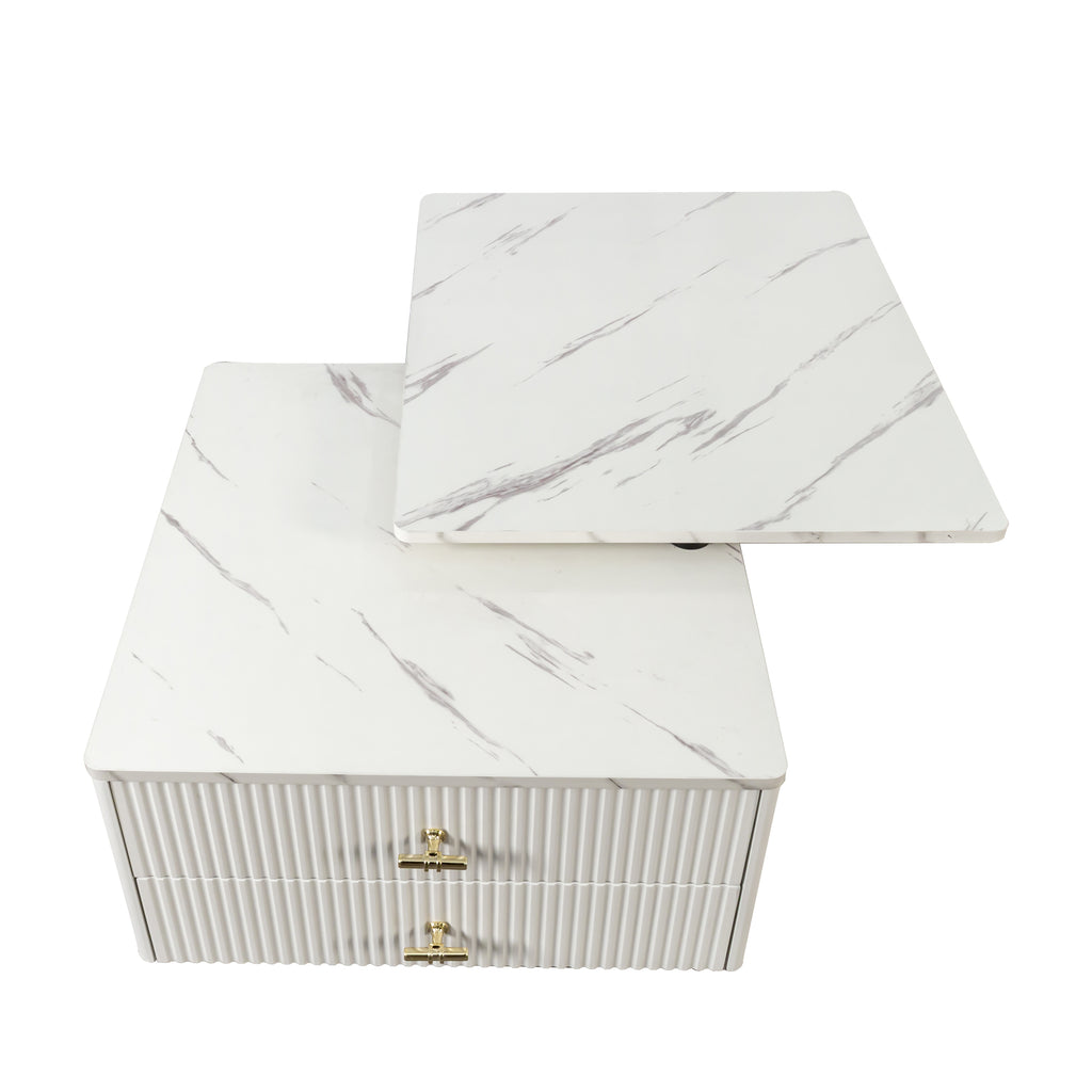 【Fashion】Modern style square, table top, offers a elegance to your home. The unique and modern design makes the marbling coffee table perfect for living room, hotel, coffee shop and so on. 【Multifunctional】This coffee table has two tabletops, which can be expanded by rotating. This coffee table is equipped with two wooden drawers to store daily necessities, making your home look more tidy. Our modern coffee table perfectly combine good looking and exquisite workmanship. 【Swivel Square Coffee Table】The swivel-movable coffee table can be moved and rotated at will. coffee table is an upgraded version of the ordinary square coffee table, equipped with a rotatable top for convenient and flexible use.