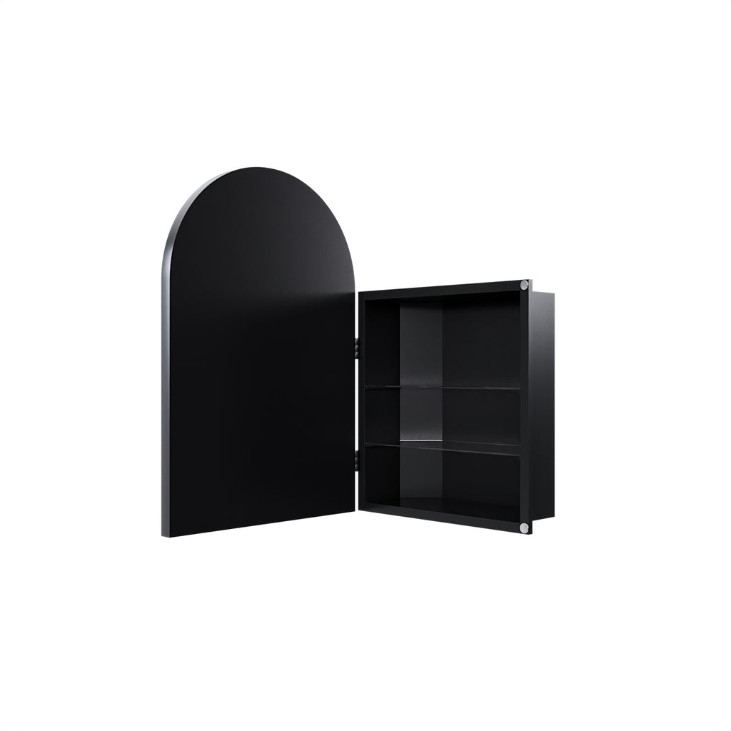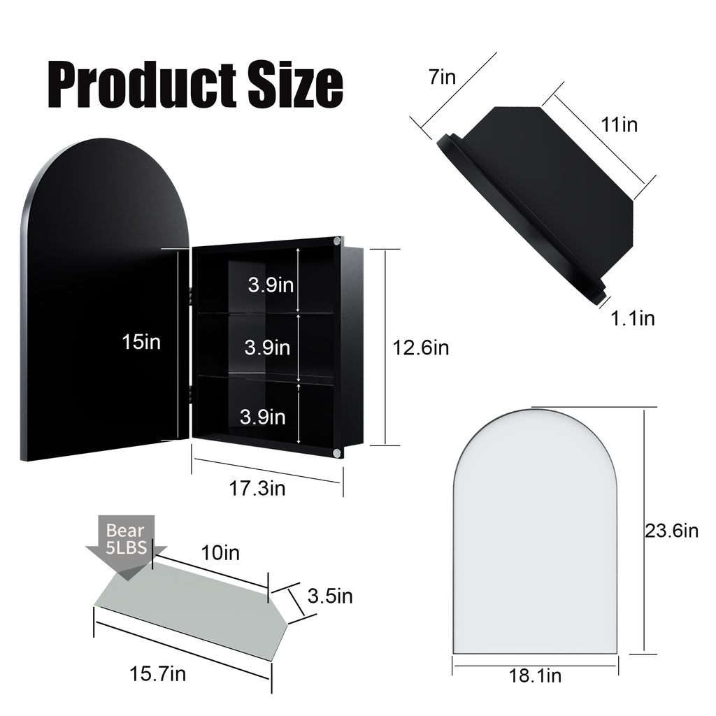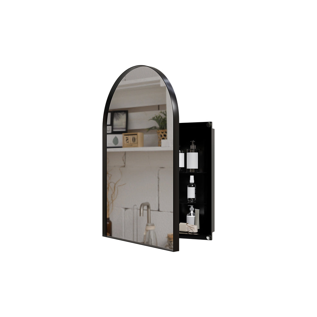 18x24 Inch Metal Corner Medicine Cabinet with Arched Mirror, Adjustable Glass Shelves, Space-Saving Bathroom Storage Organizer for Small Spaces, Matte Black