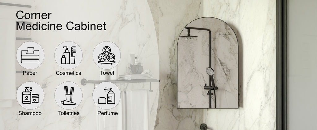 • Space-Saving Corner Design: Specifically engineered to fit snugly into bathroom corners, this mirror cabinet maximizes unused space, providing an ideal storage solution for small bathrooms while serving as a functional mirror.