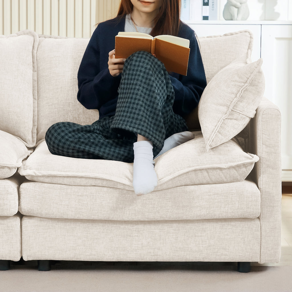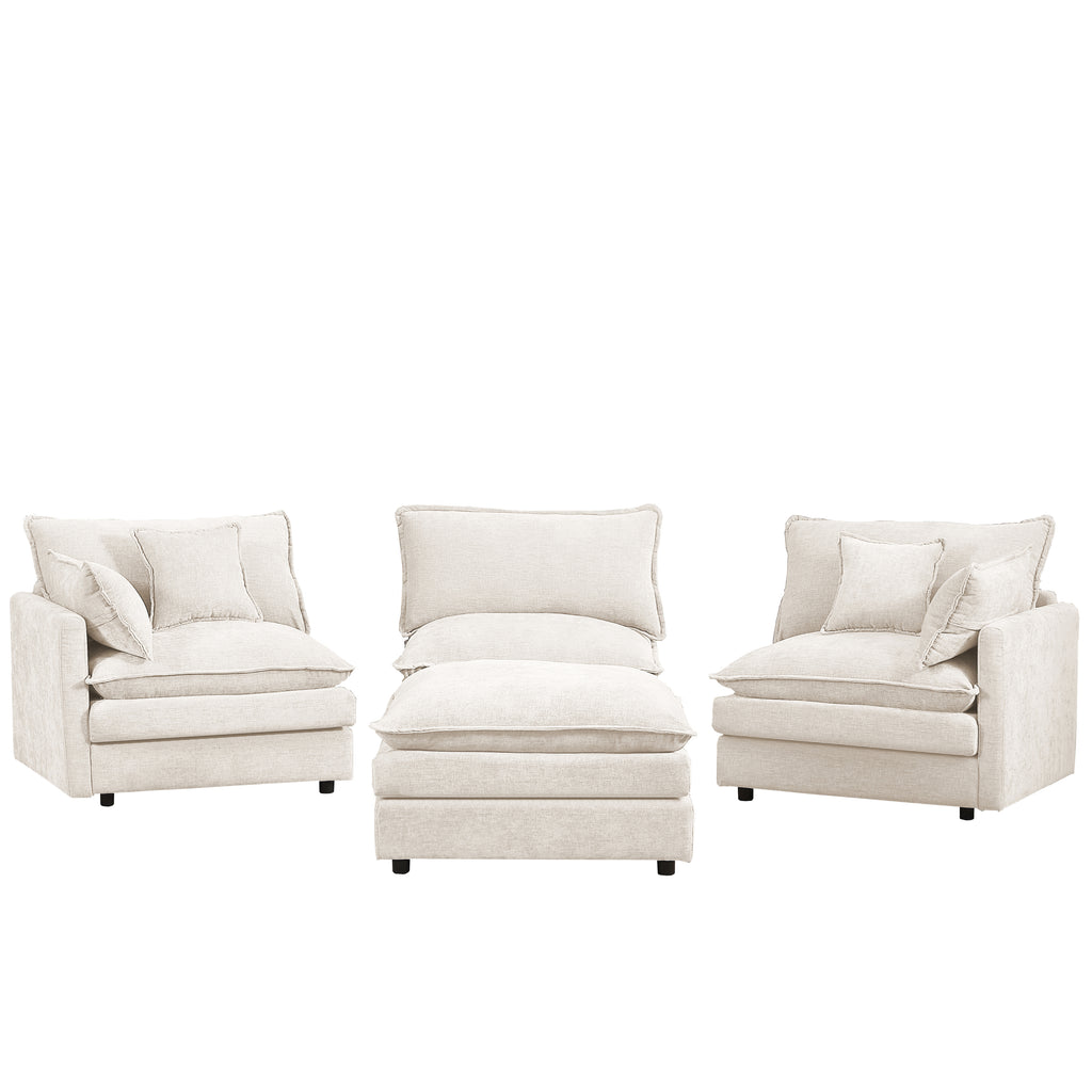 Modular Sectional Sofa, 102 Inch L Shaped Couch Set for Living Room, 3-Seater Comfy Cloud Couches with Movable Ottoman, DIY Combination, Chenille, Beige