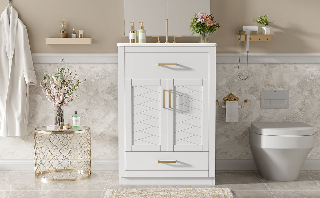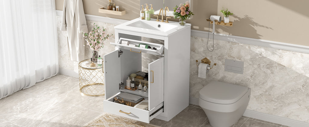 24' Bathroom Vanity with Integrated Ceramic Sink, Bathroom Cabinet with Tip-out Drawer