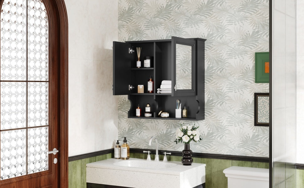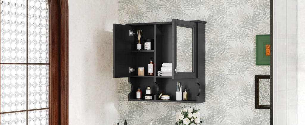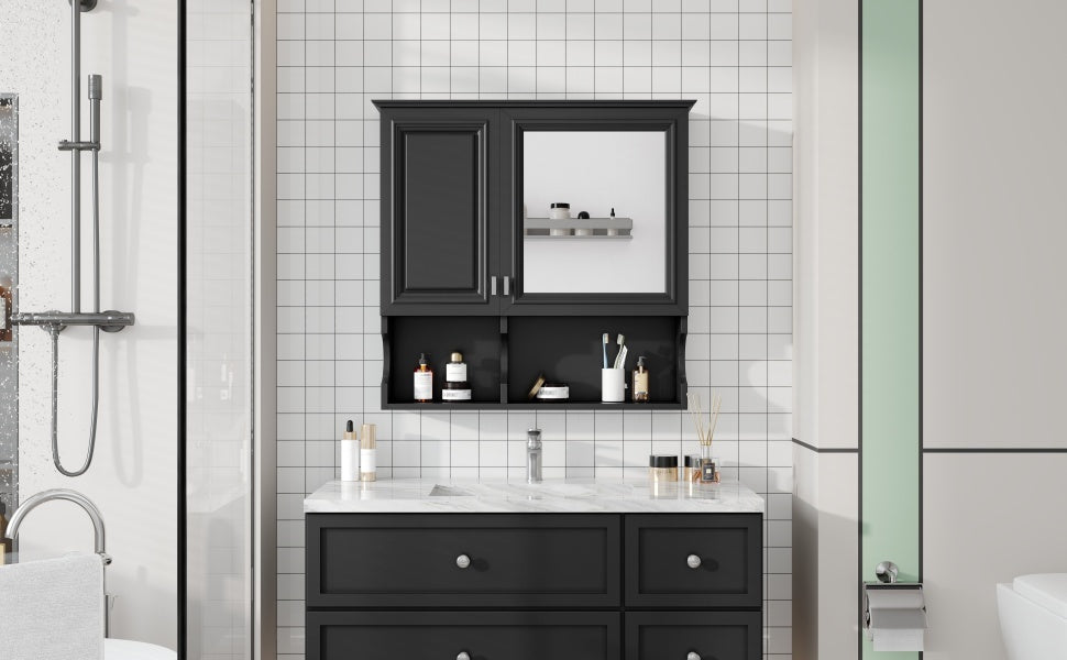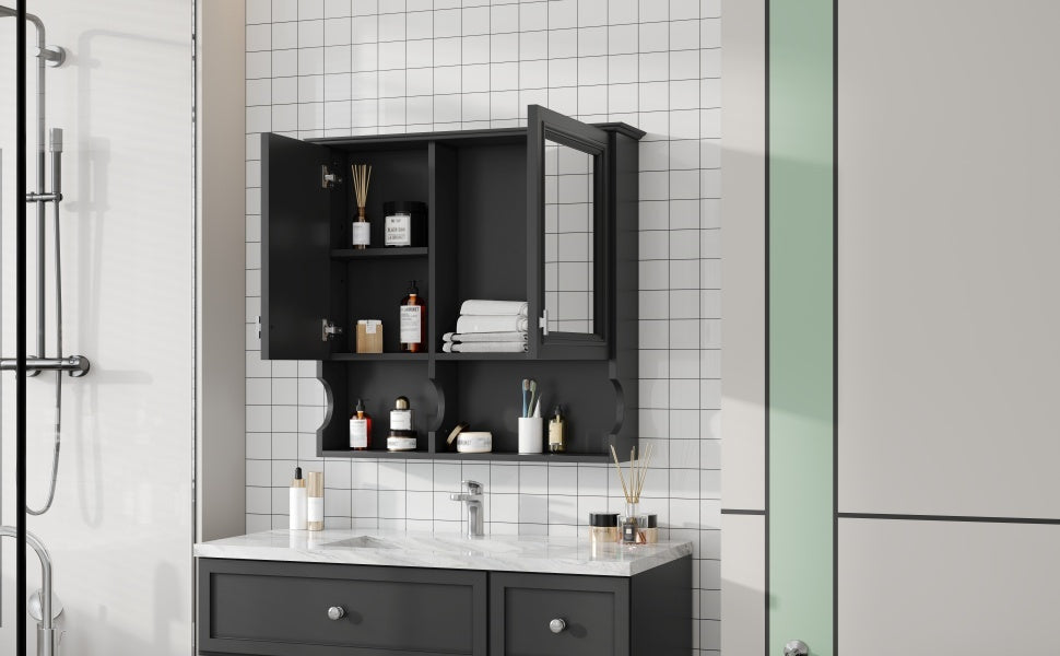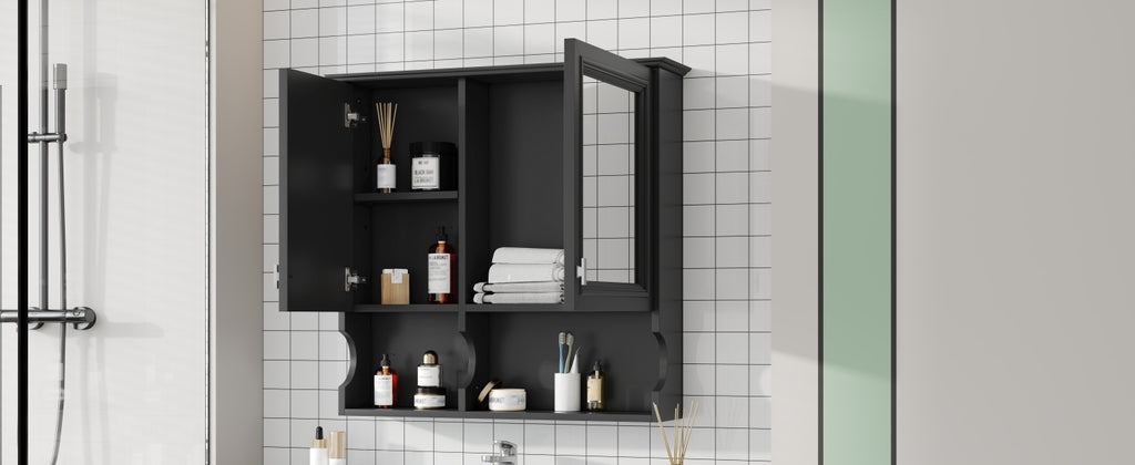 - [Adjustable and Accessible Shelving] For everyday convenience, the mirror cabinet includes open shelving designed for quick access to frequently used objects. What’s more, the cabinet also offers adjustable shelf, allowing you to customize the interior space according to your storage needs and preferences.