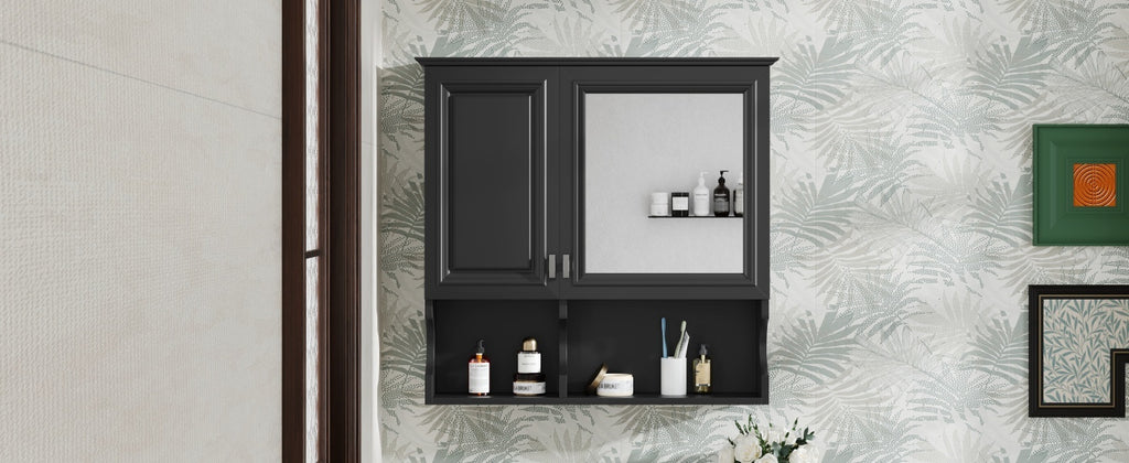 - [2-in-1 Bathroom Mirror & Medicine Cabinet] This bathroom mirror cabinet seamlessly combines storage and mirror functions. Designed for versatility, it features a crystal-clear mirror while providing hidden space behind the door to organize bathroom essentials.