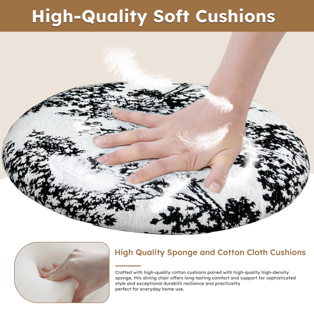 • Luxurious Velvet Seat Cushion with Wood-Grain Pattern-The round seat cushion is padded with high-density foam for superior comfort and support, wrapped in premium soft velvet fabric. The stylish wood-grain embossed pattern adds a modern and fashionable touch, blending seamlessly with the walnut frame. The ergonomic backrest design provides optimal support for a relaxing dining experience.