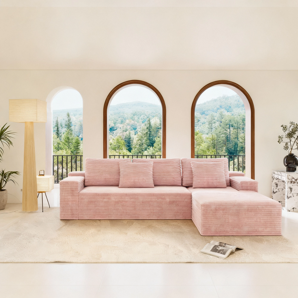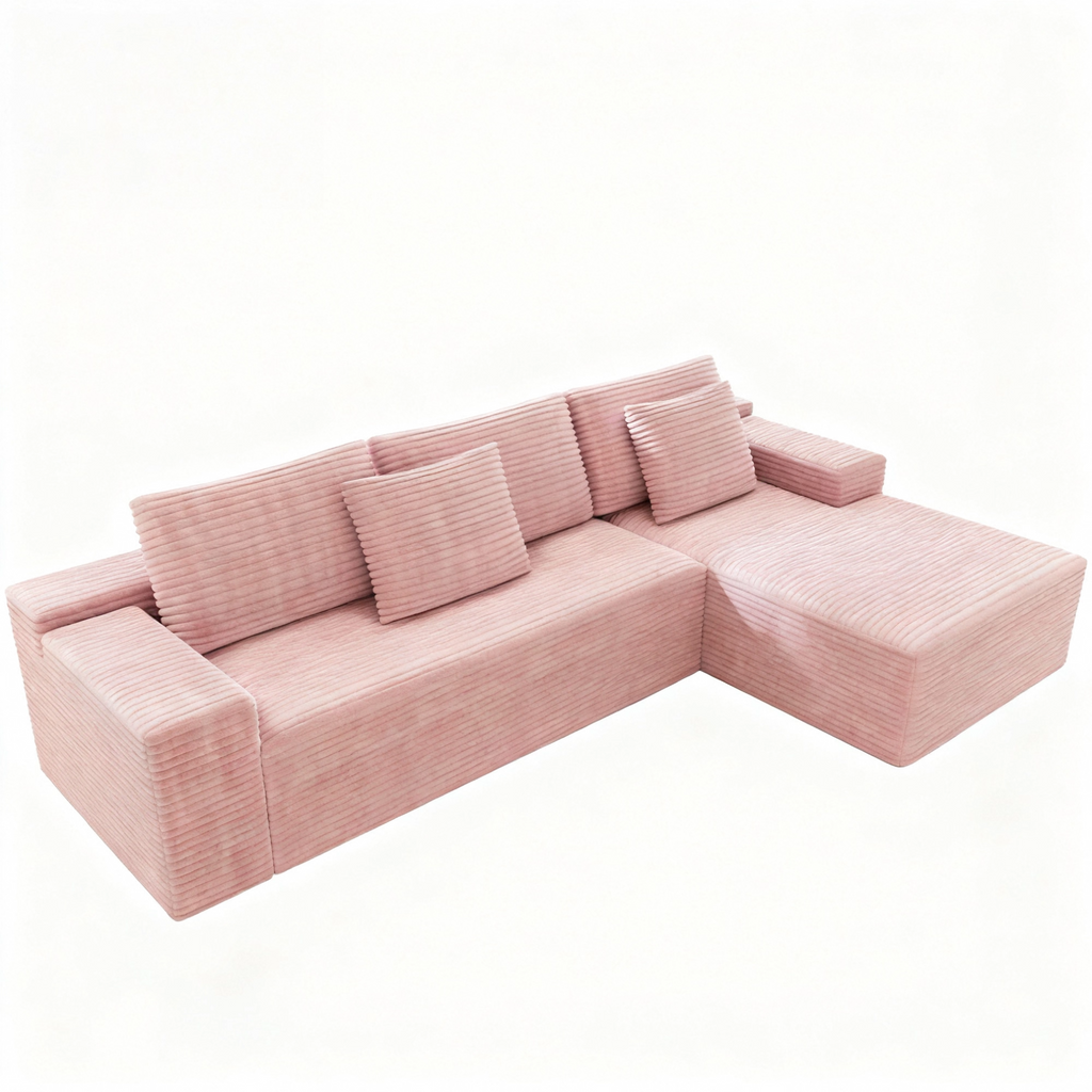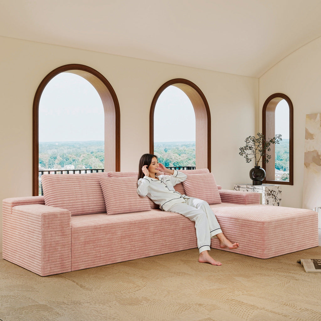 104.3*68.9'Modular sectional sofa seat,Upholstered compressed couch for living room,Bedroom,Apartment,No assembly required,2PC free combination,Plush corduroy fabric,PINK