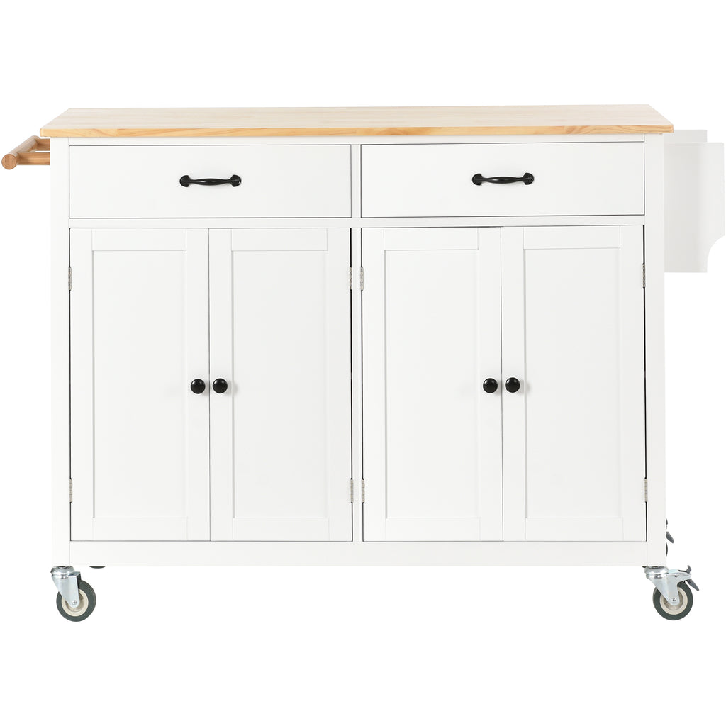 Kitchen Island Cart with 4 Door Cabinet and Two Drawers and 2 Locking Wheels - Solid Wood Top