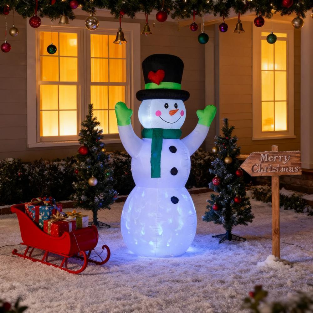 • - Show Your Festiveness: You and your neighbors will marvel at the 10ft cheerful snowman wearing black hat, green scarf and gloves. This Christmas inflatable snowman will take your outdoor holiday cheer to new heights