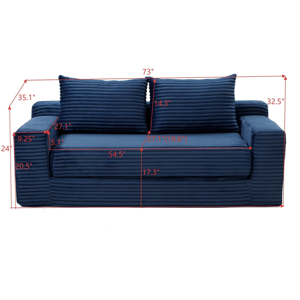 - Corduroy boneless cloud couch design with high-density foam filling. No frame for ultimate relaxation and creates a cozy lounge sofa experience. Soft velvet fabric cover is durable and super comfy to touch
