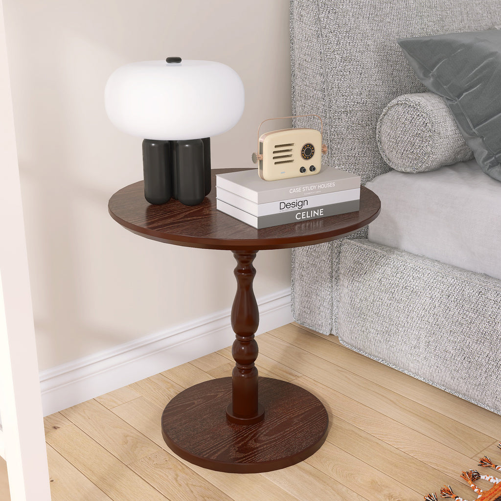 23'' Walnut Brown Accent Round Table, Round Side Table, Small Drink Table for Small Spaces, Modern Accent Nightstand with Solid Wood Leg for Living Room, Bedroom, Corners, and Office (Walnut Brown)