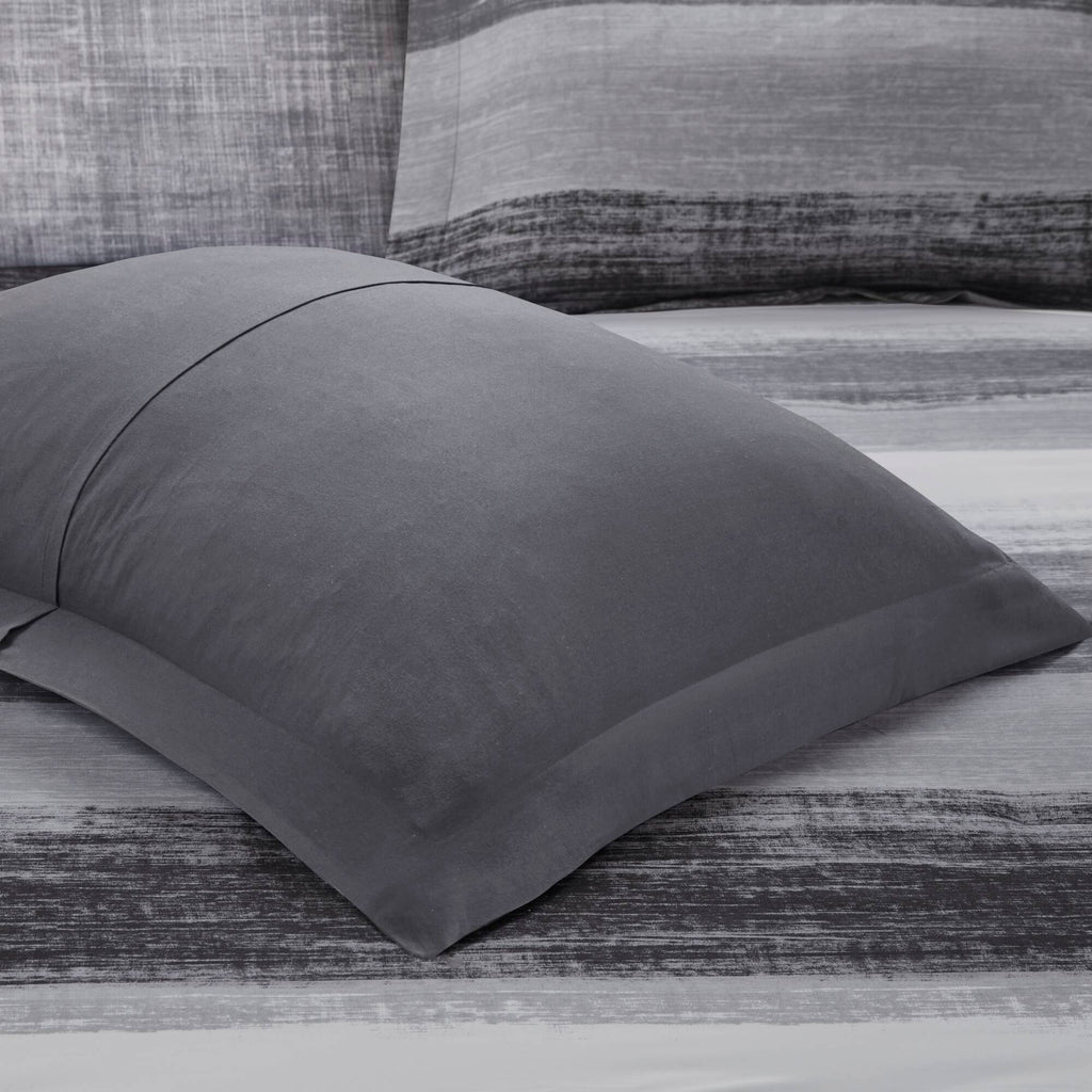 • A watercolor stripe print is beautifully displayed on the ultra-soft microfiber comforter.