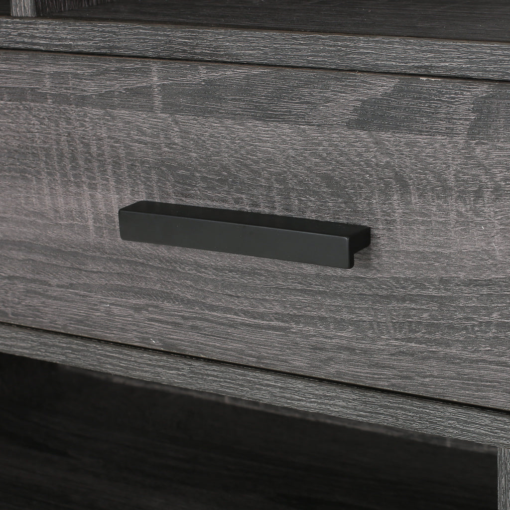 - STORAGE SPACE: Our bookcase offers multiple shelves, one drawer, and two cabinets to organize and display a variety of items in a convenient manner. The cabinet doors are finished with sleek black handles for convenient access.