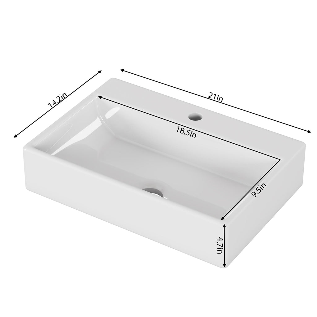 20.6' Square Ceramic Vessel Sink - Premium White Above-Counter Basin