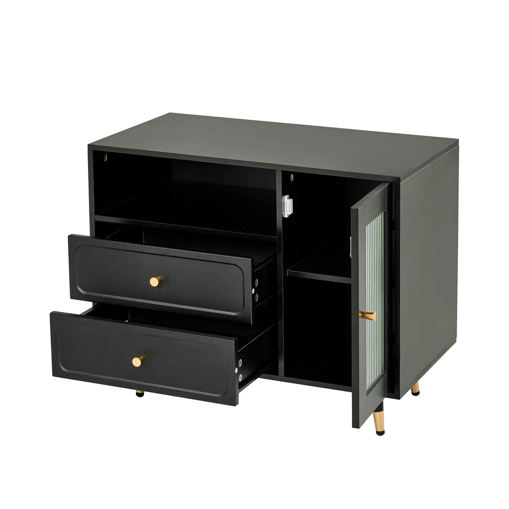 The canbinet door is equipped with semi-transparent striped glass, it obscures clutter while letting light through.