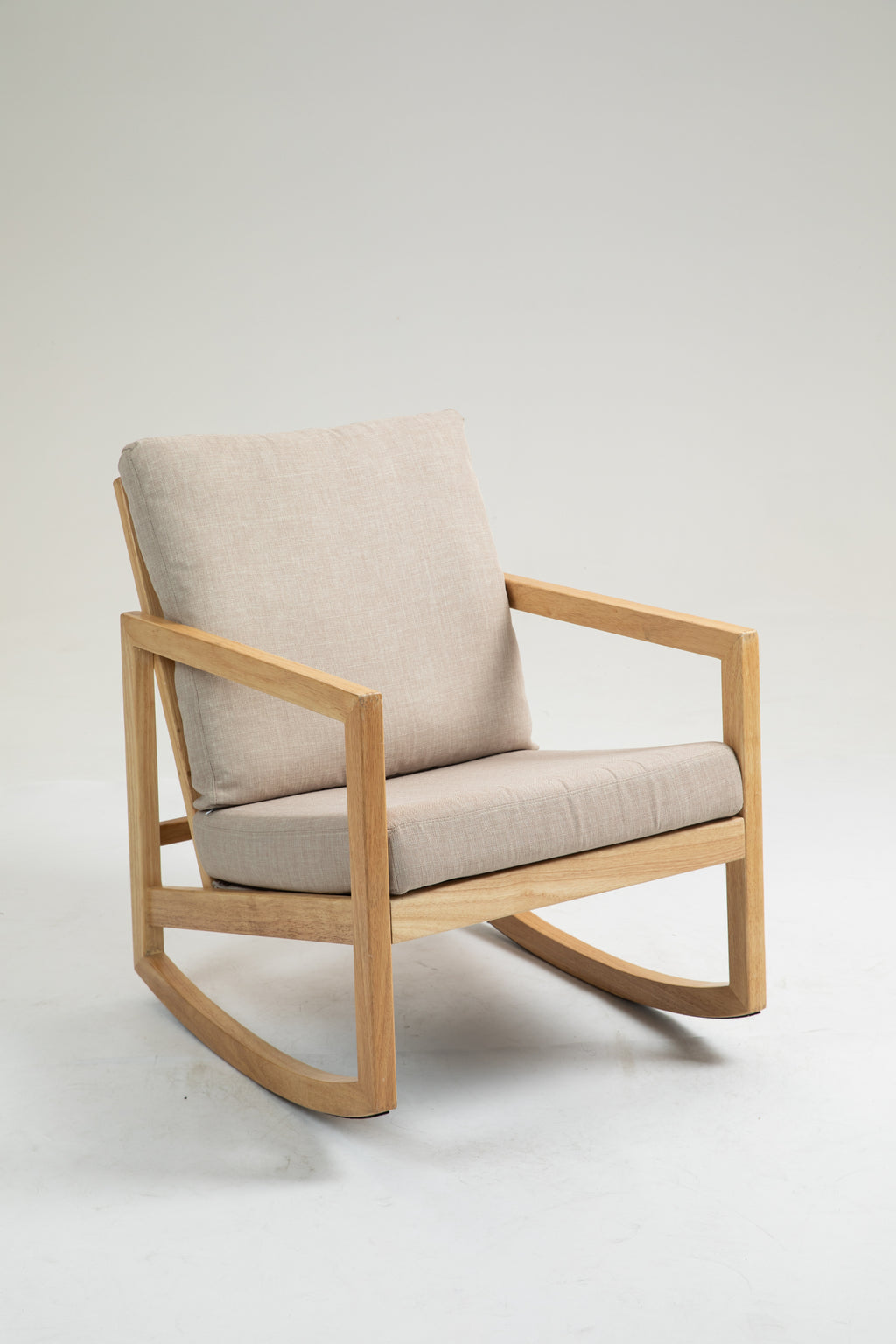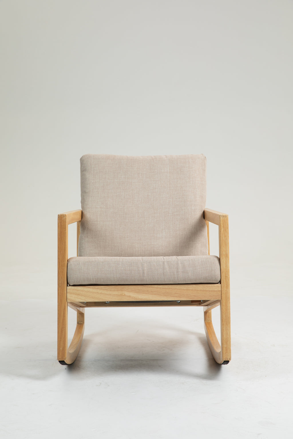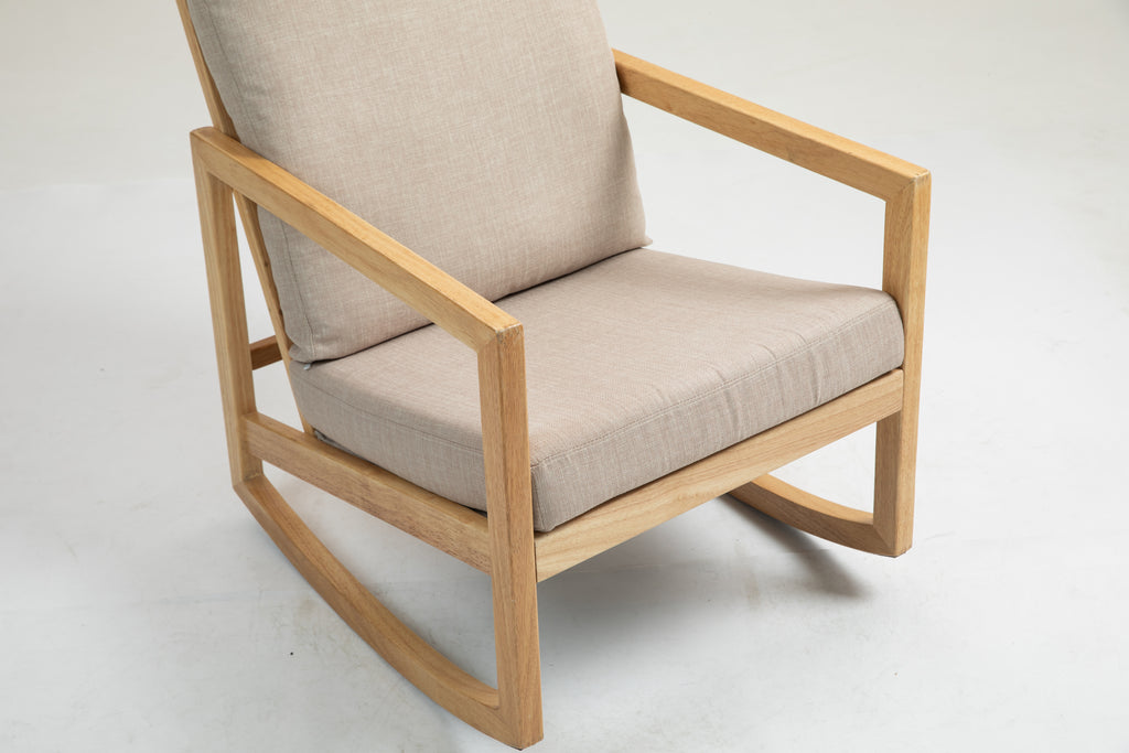 Upholstered Accent Glider Chair,Rubberwood Frame in Natural, Khaki