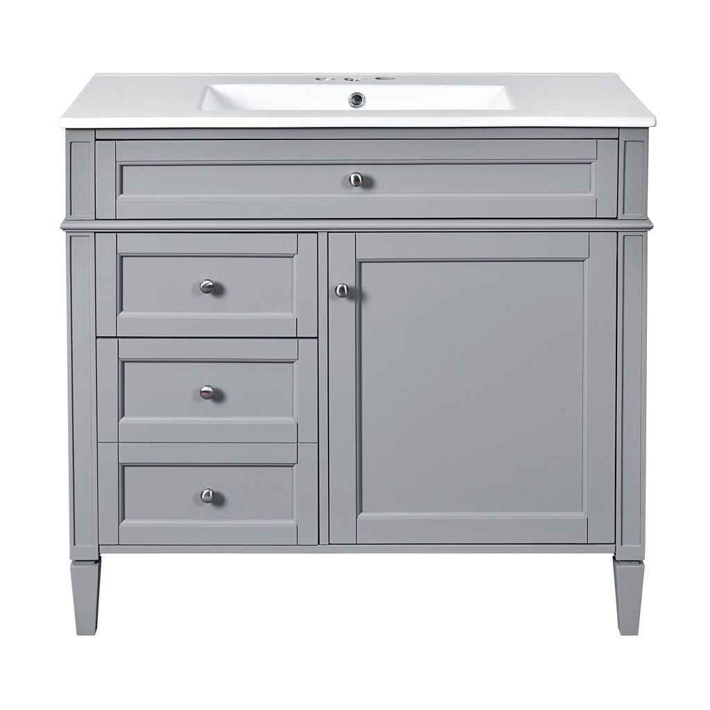 36'' Bathroom Vanity with Top Sink, Modern Bathroom Storage Cabinet with 2 Drawers and a Tip-out Drawer, Single Sink Bathroom Vanity