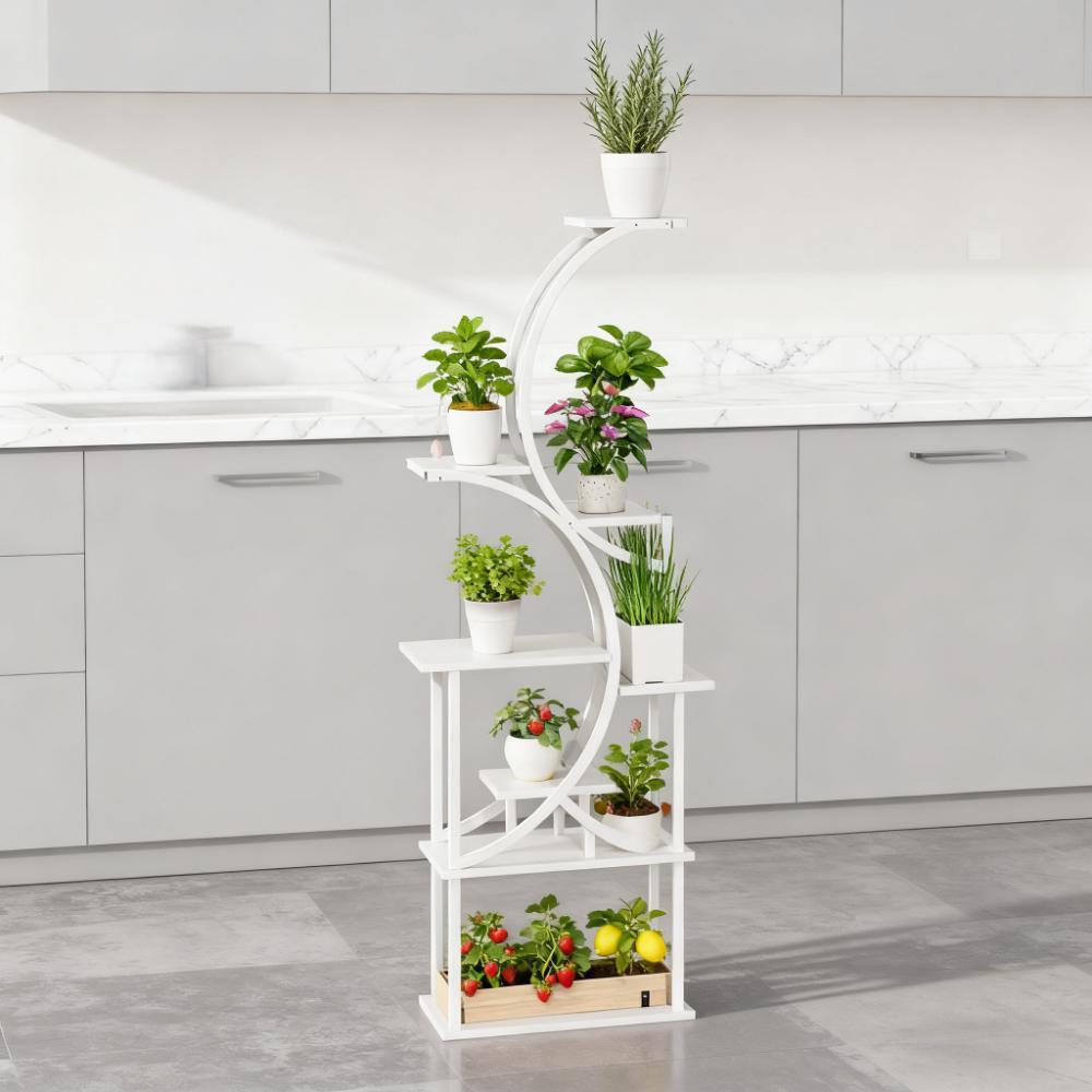 - - Elegant 8-Tier Design: This tall plant stand features an S-shaped structure, adding a unique, dynamic touch to your indoor plant display. The 8-tier design is great for showcasing a variety of plants and ensuring each pot receives ample sunlight.