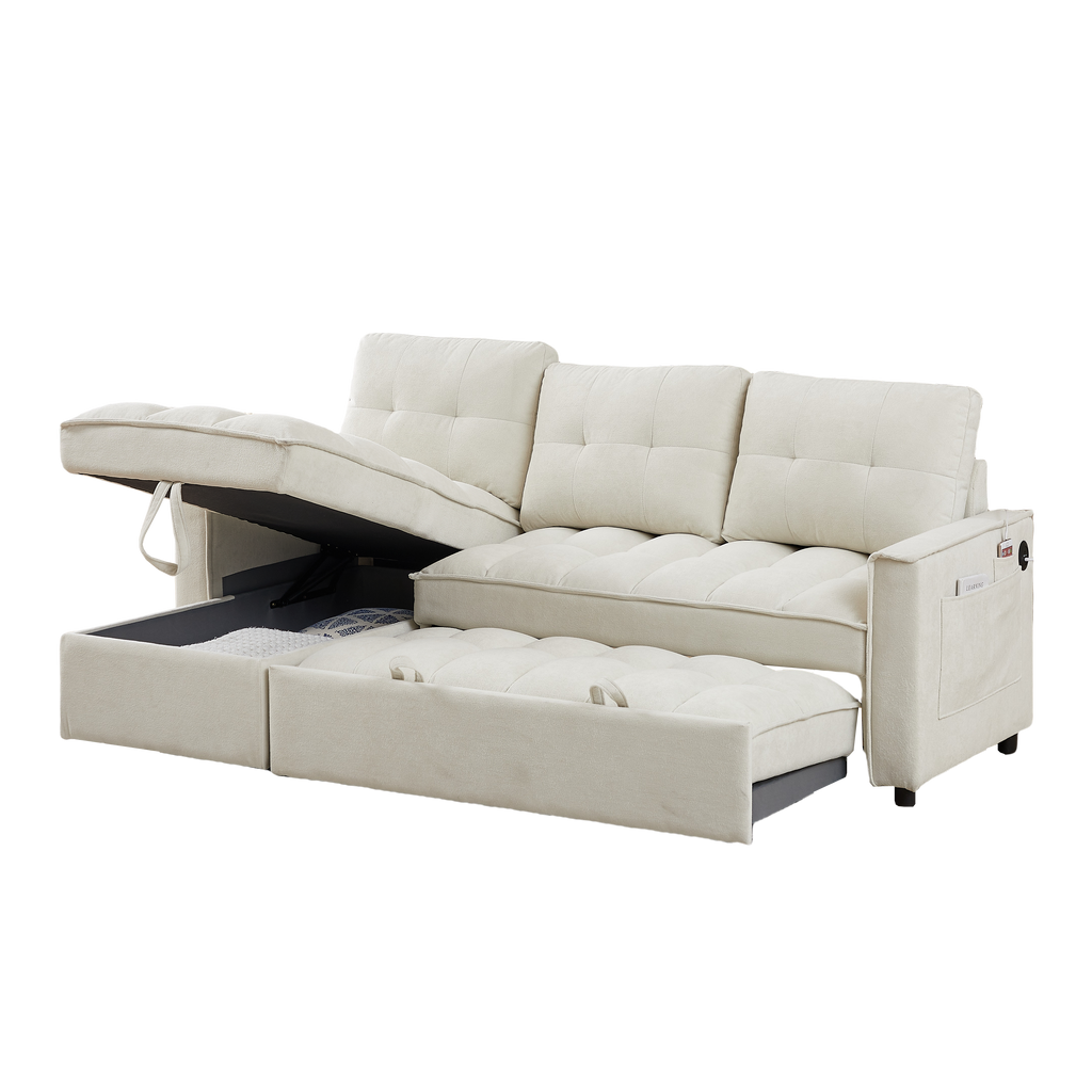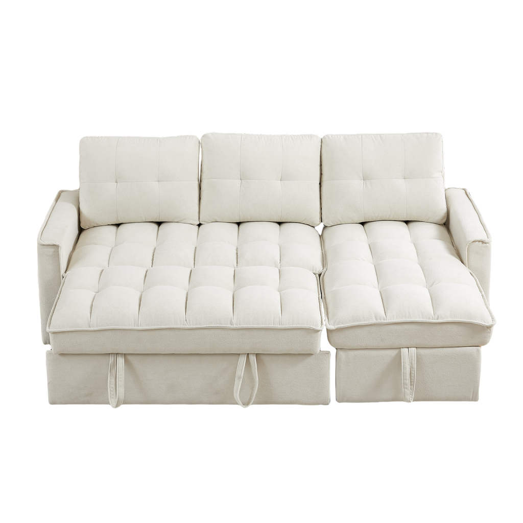 - ✔ STORAGE SPACE: The sleeper sofa has a hidden storage space underneath the chaise area and side storage pockets that provide an extra area for blankets, pillows, magazines, remotes or other items. This remarkable feature makes it an exceptional choice for those with limited storage space in their home.
