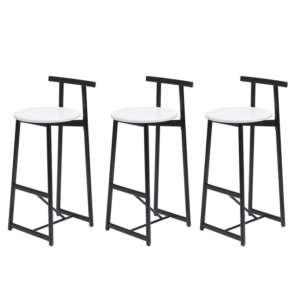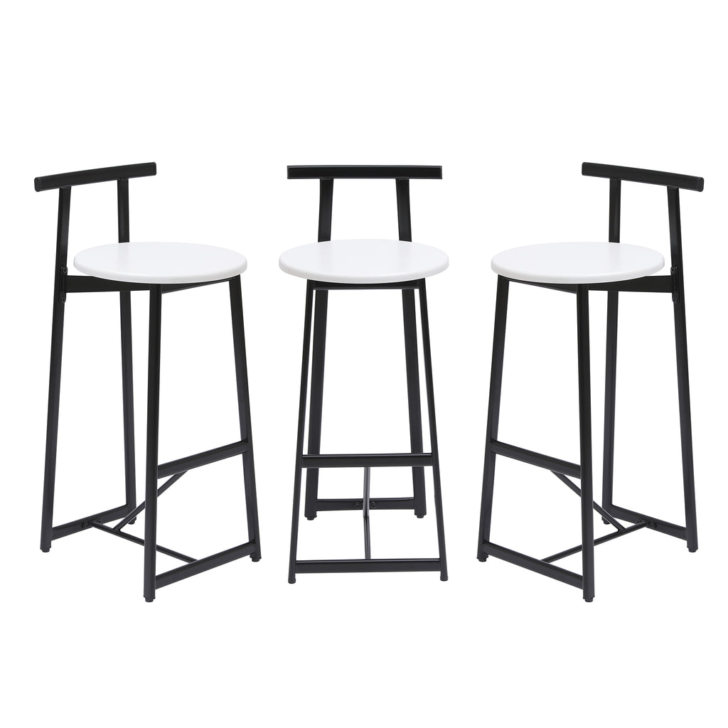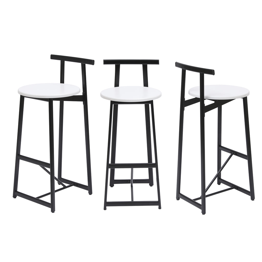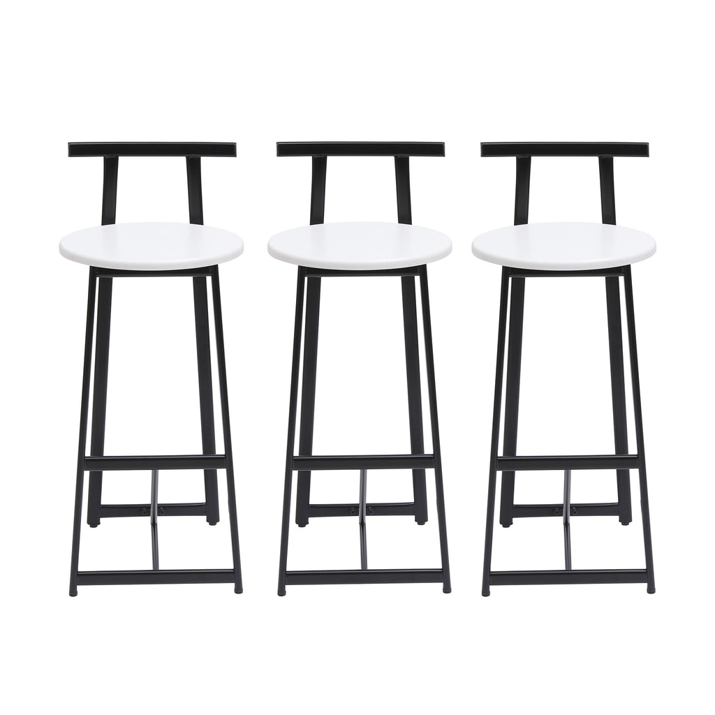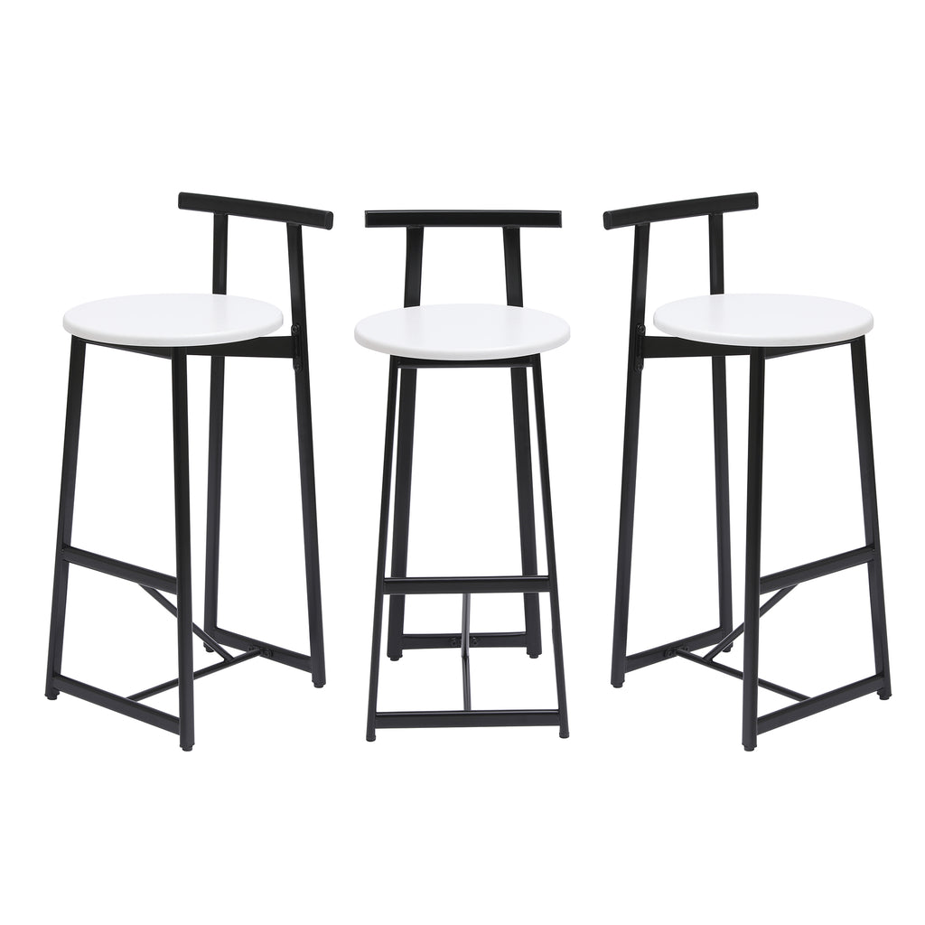 Modern Bar Stools with Backrest for Kitchen Island or Pub Room, Metal Frame, Black & White, Set of 3