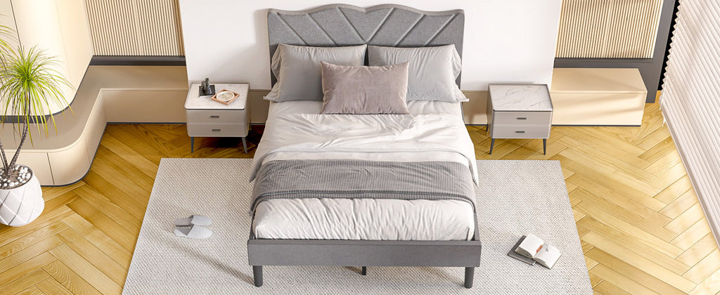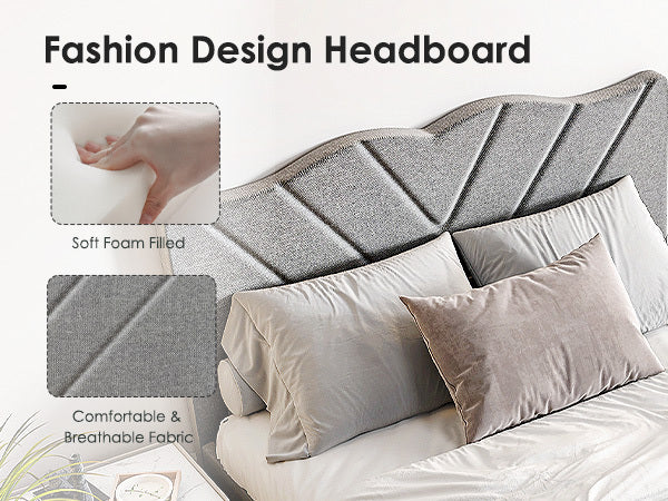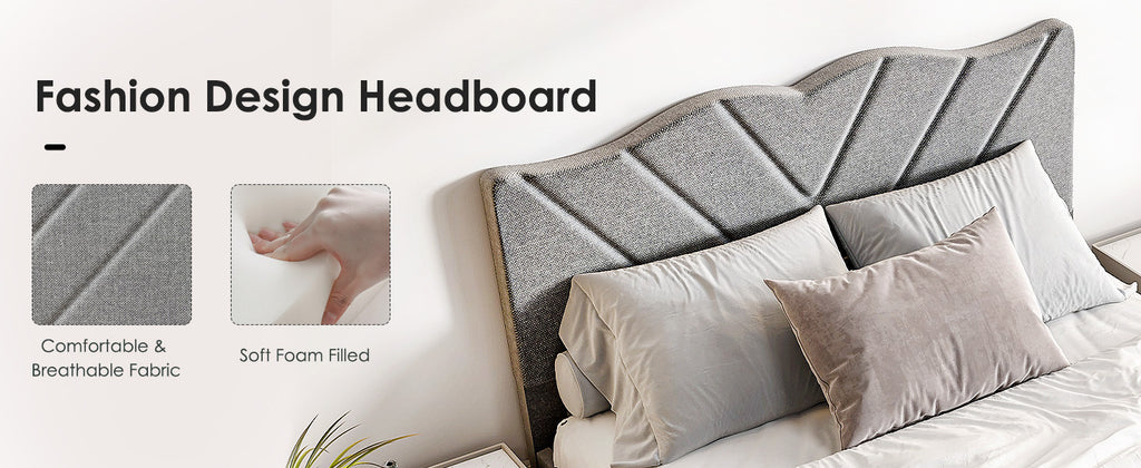• Minimalist & Noise-Free: This queen-size bed frame features a sleek, padded upholstered headboard that complements a variety of decor styles. Equipped with EVA mute bars, it effectively eliminates friction noise, ensuring a completely silent and creak-free sleeping experience. Perfect for those who value both style and tranquility