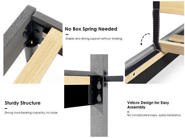 • No Box Spring Needed: Designed with solid wood slats and simple assembly; mattress does not slide; suitable for memory foam or spring mattresses without a box spring