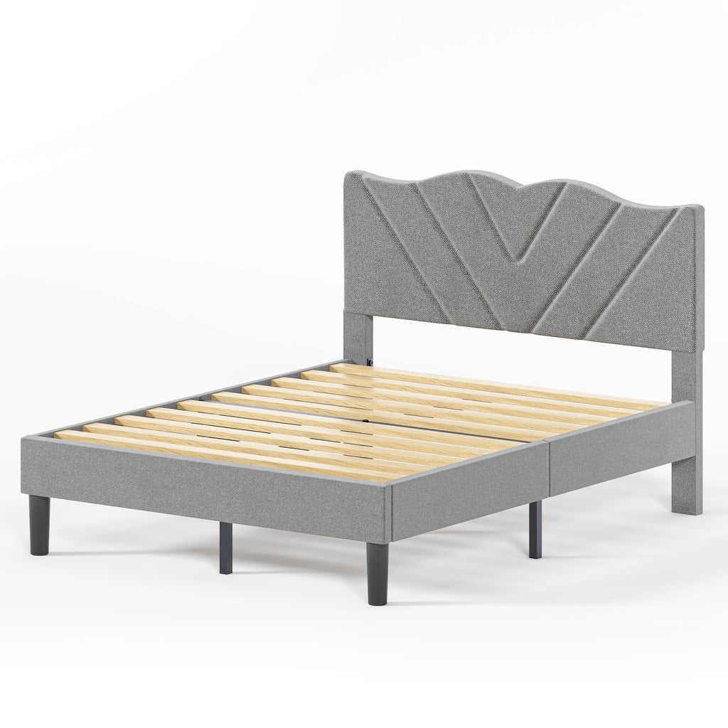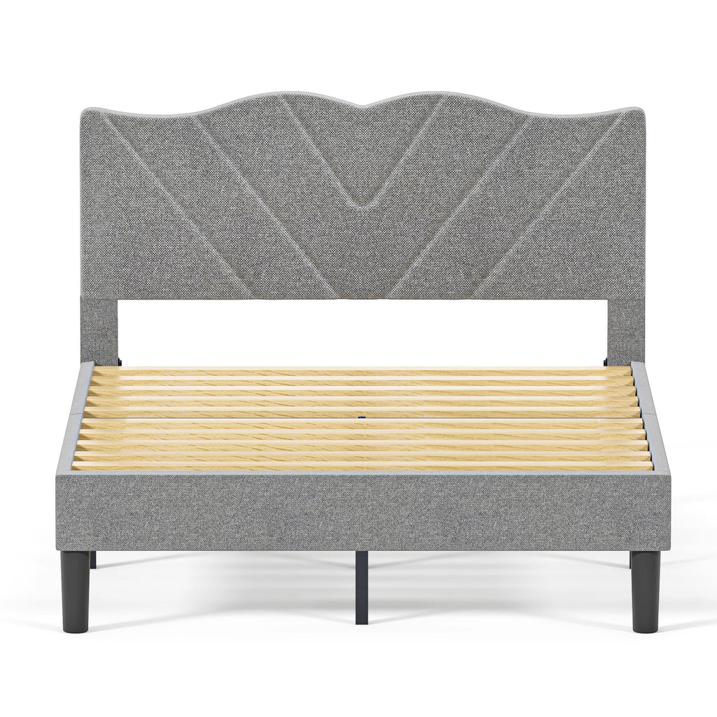 Full Size Modern Platform Bed Frame with Upholstered Headboard & Wooden Slats - No Box Spring Needed, Easy Assembly, Grey