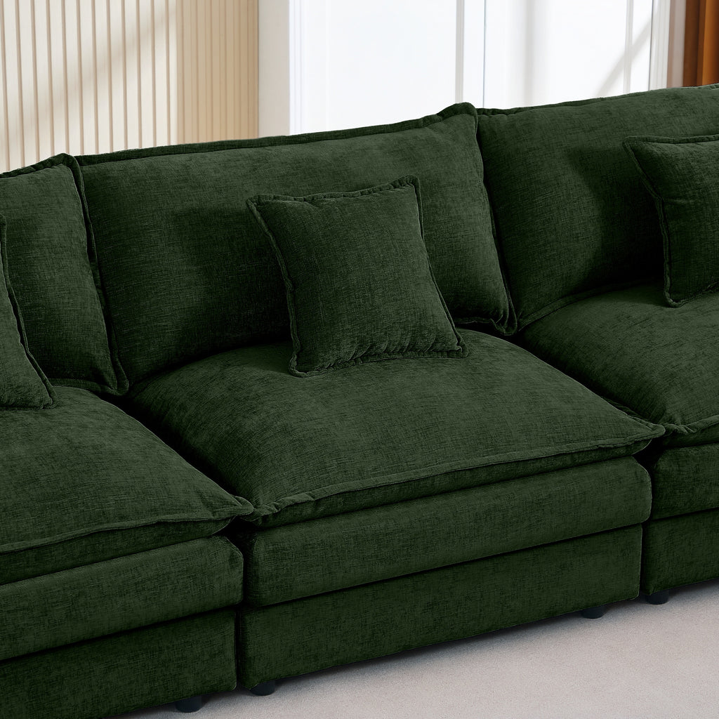 Modular L-Shaped Sectional Sofa, 3-Seater Comfy Cloud Couch with Movable Ottoman, Green Chenille, 102 Inch, DIY Reconfigurable Layout
