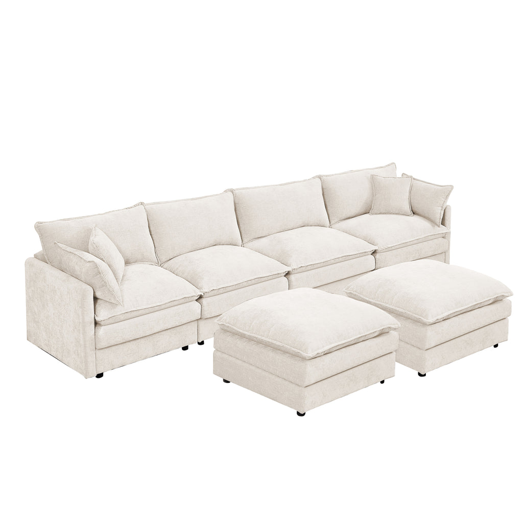 Modular Sectional Sofa, 130.7 Inch U Shaped Couch Set for Living Room, 4-Seater Comfy Cloud Couches with Movable Ottoman, DIY Combination, Chenille, Beige