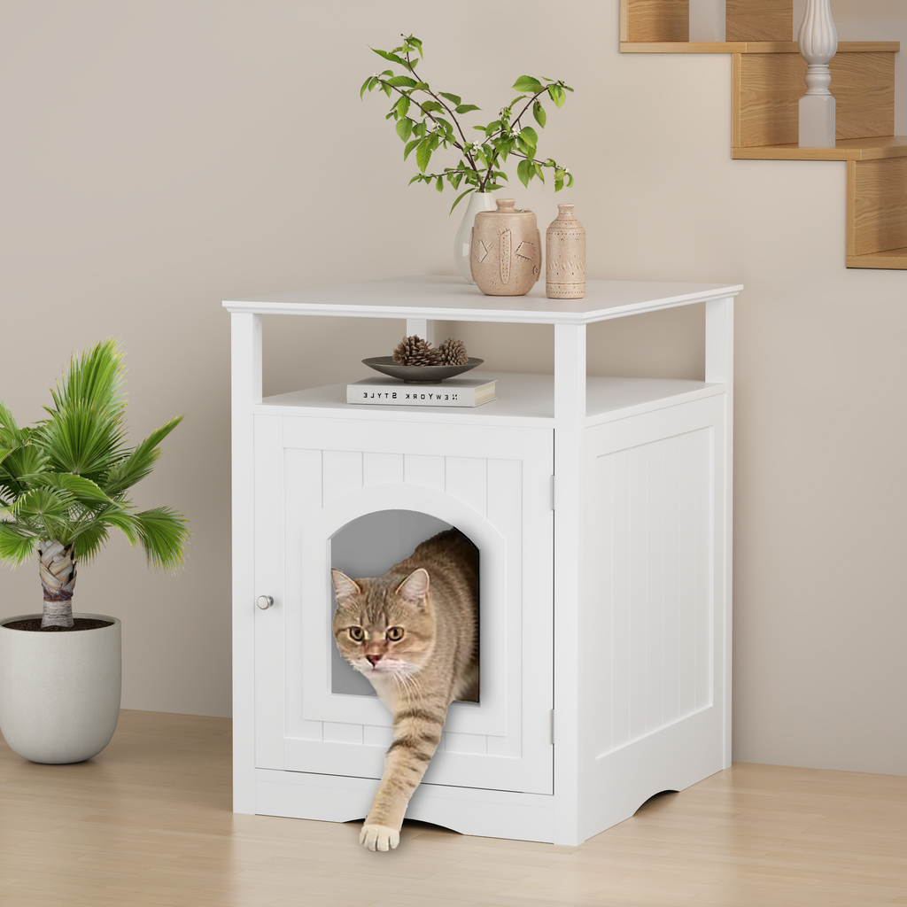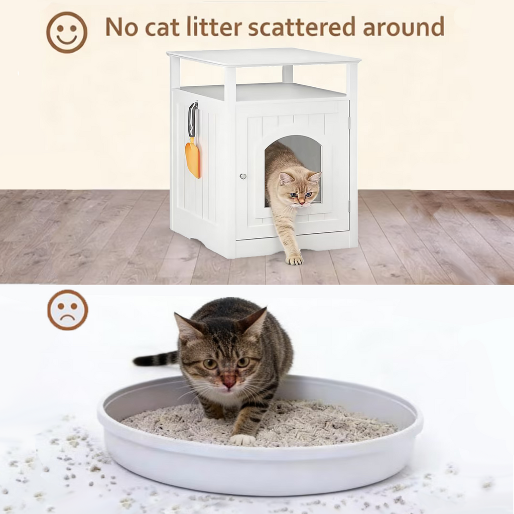 • • Hidden Litter Box Enclosure Design-This enclosed cat litter box furniture helps hide the litter box neatly, reducing mess and odors while keeping your living space clean and organized.