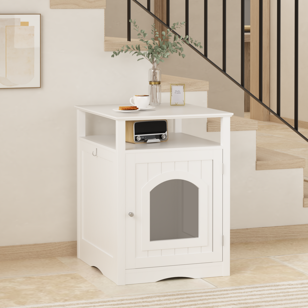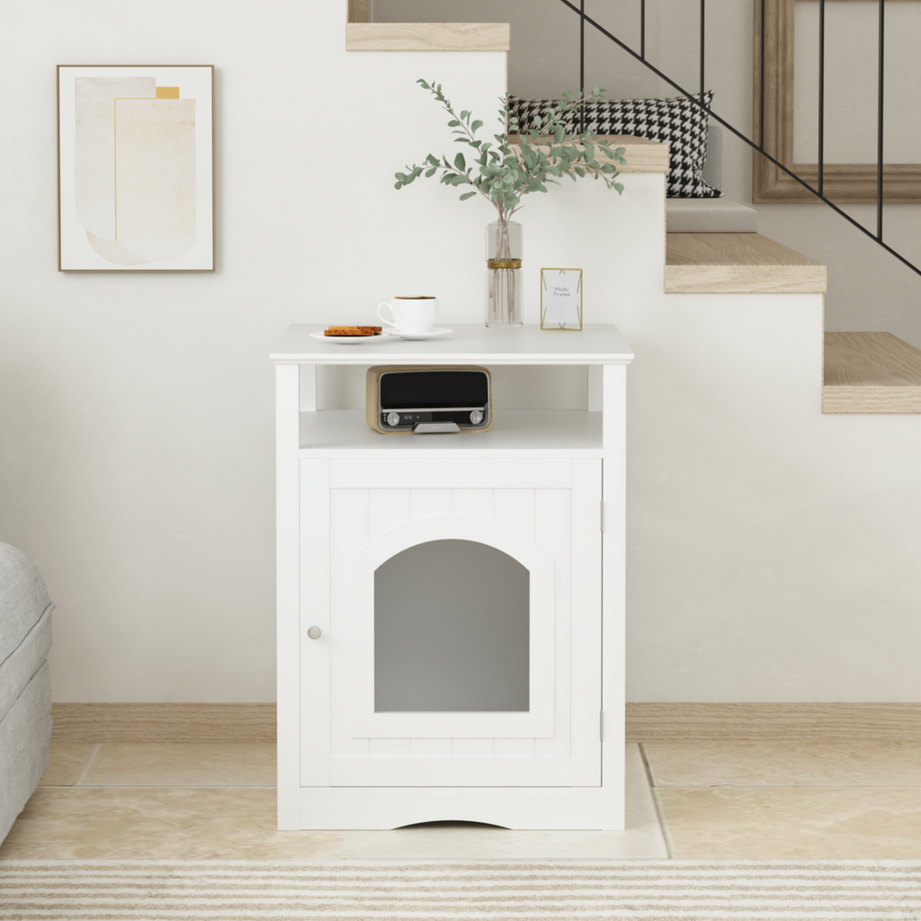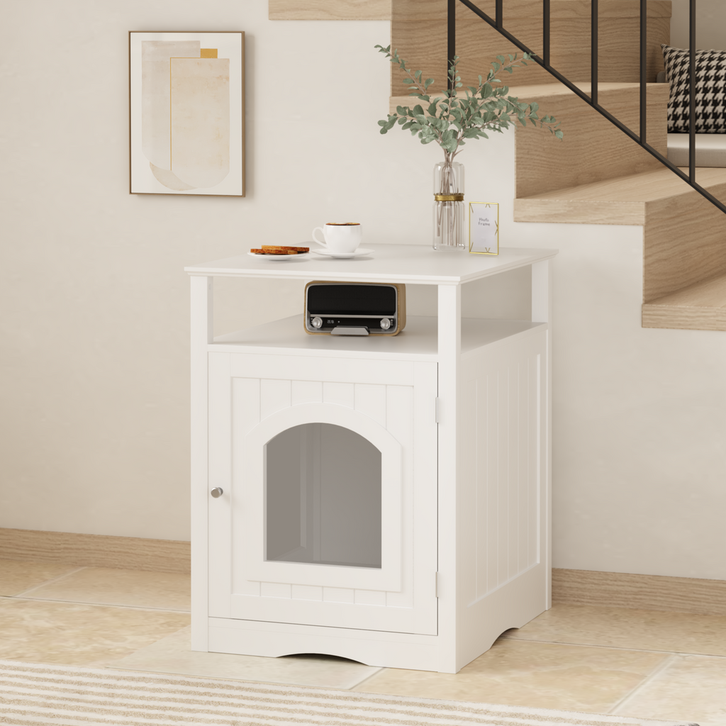 • • Modern Furniture-Style Appearance-Designed to look like a stylish side table or nightstand, this litter box enclosure blends seamlessly into living rooms, bedrooms, or apartments.