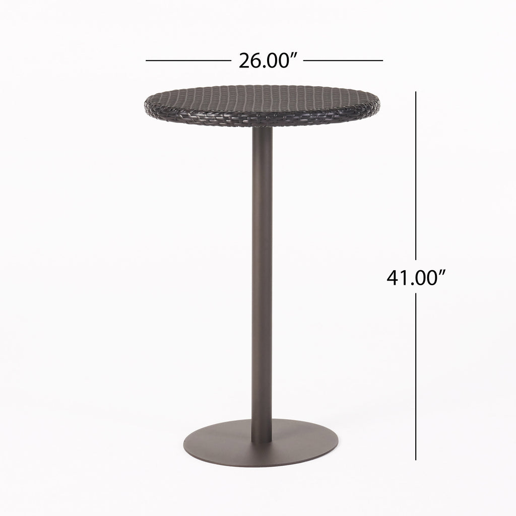 Outdoor 26' Dia. Round PE Rattan Bar Table with Iron Frame, Multibrown