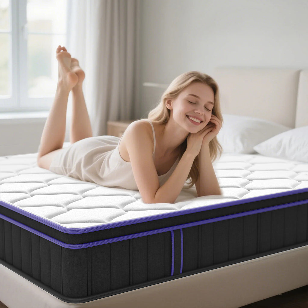 • 【INDIVIDUALLY-WRAPPED INNERSPRING COILS】 Engineered for superior motion isolation, our pocketed steel coils adapt to your body's movements, reducing disturbances from a restless partner. Enhanced airflow ensures a cool and refreshing sleep environment