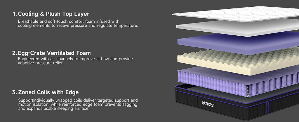 • 【GEL MEMORY FOAM】Featuring a ½” gel-infused memory foam pillow top, the MZG mattress cradles your body while keeping you cool. Designed to relieve pressure points and provide optimal support for all sleep positions. The dynamic transition foam work together to cradle your neck, back, shoulders, and hips.