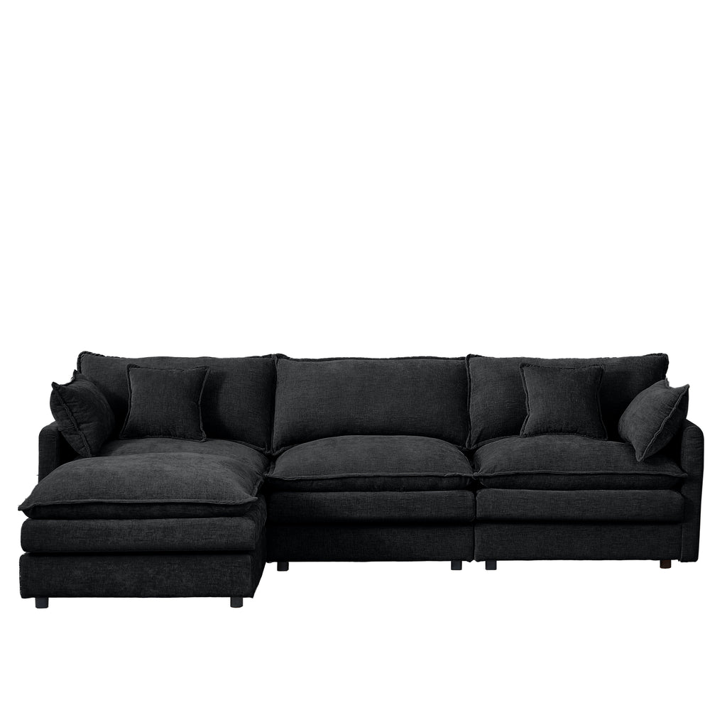 Modular L-Shaped Sectional Sofa Set with Movable Ottoman, Chenille Fabric, Black, 102 Inch