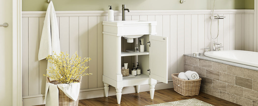 - [Smart Storage] Despite its small size, this vainty offers plenty of storage space. It has closed cabinet: perfect for storing toiletries and cleaning supplies, keeping them dust-free.The clever design helps you stay organized and makes the most of your space.